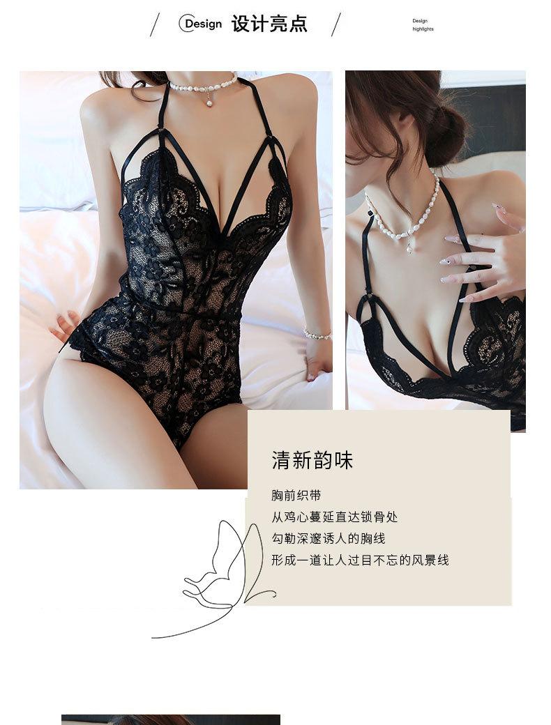 Lencería sexy de noche larga para mujer, pijama de encaje con tentación sexy, mono abierto sin mangas, uniforme de tentación 1030