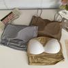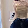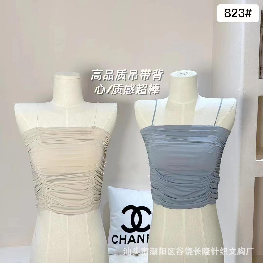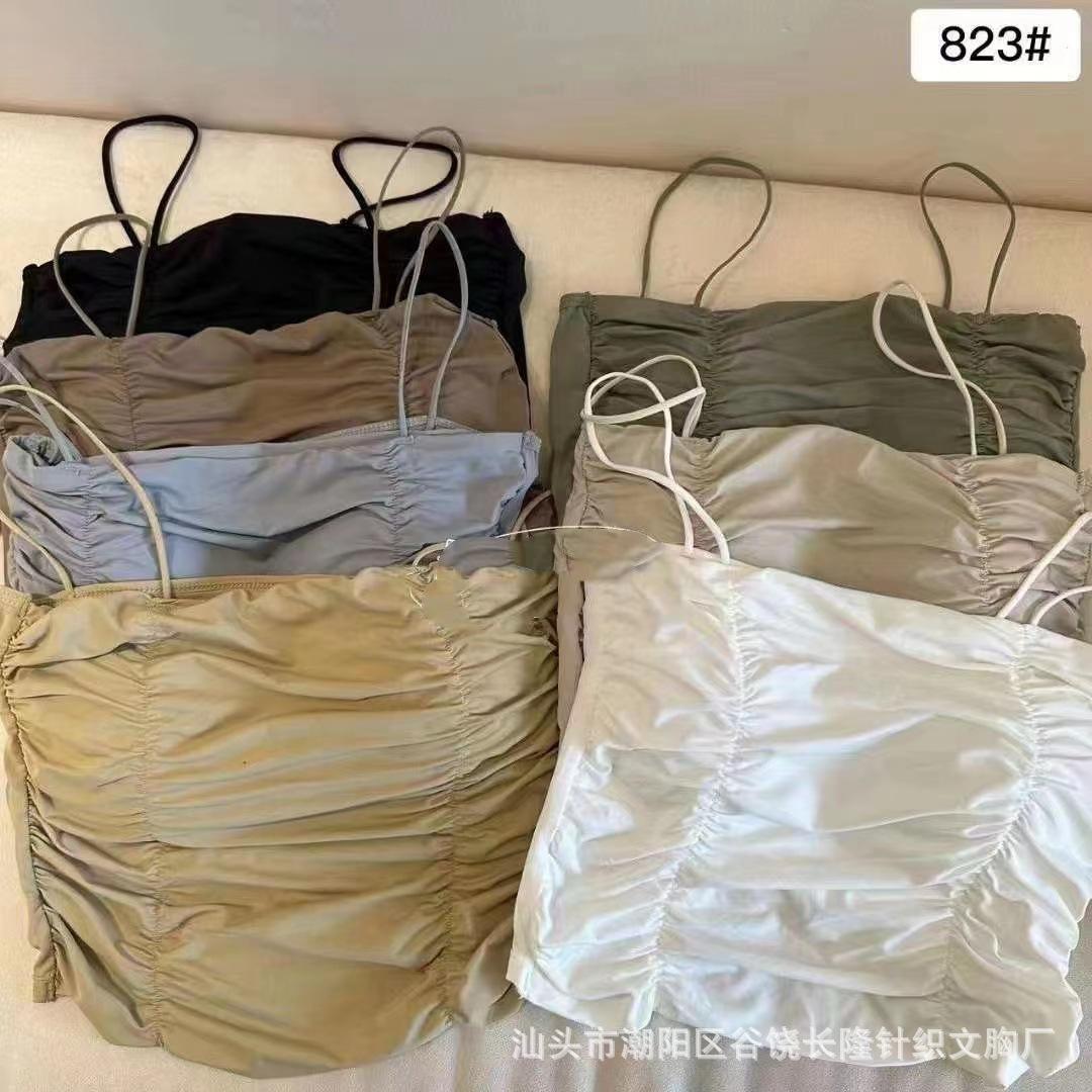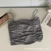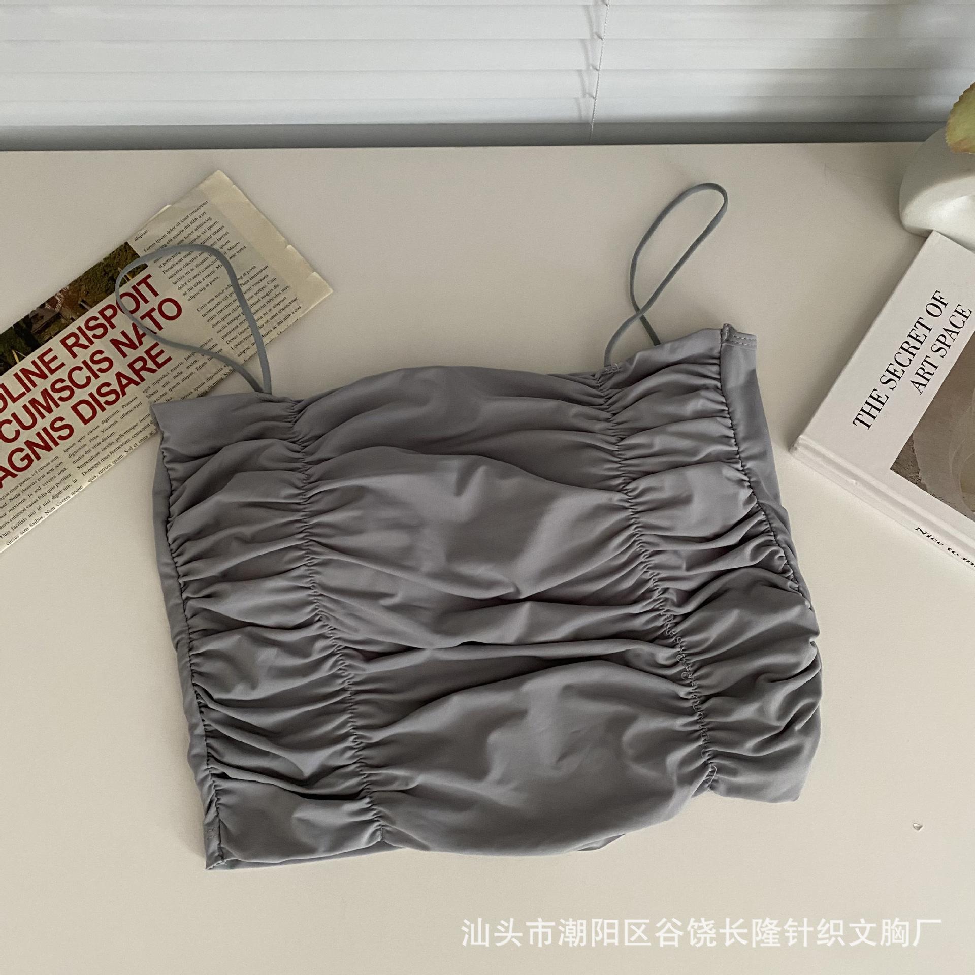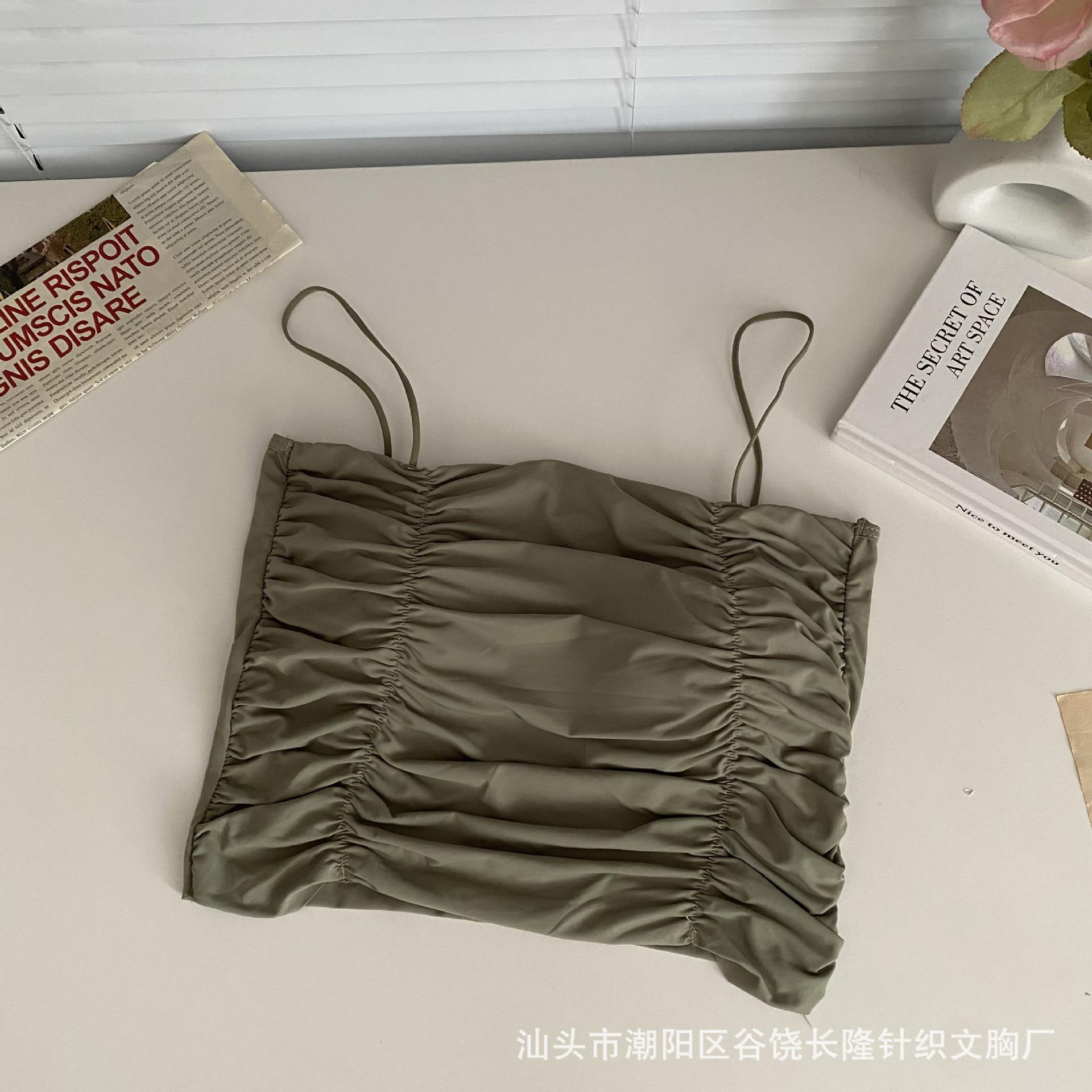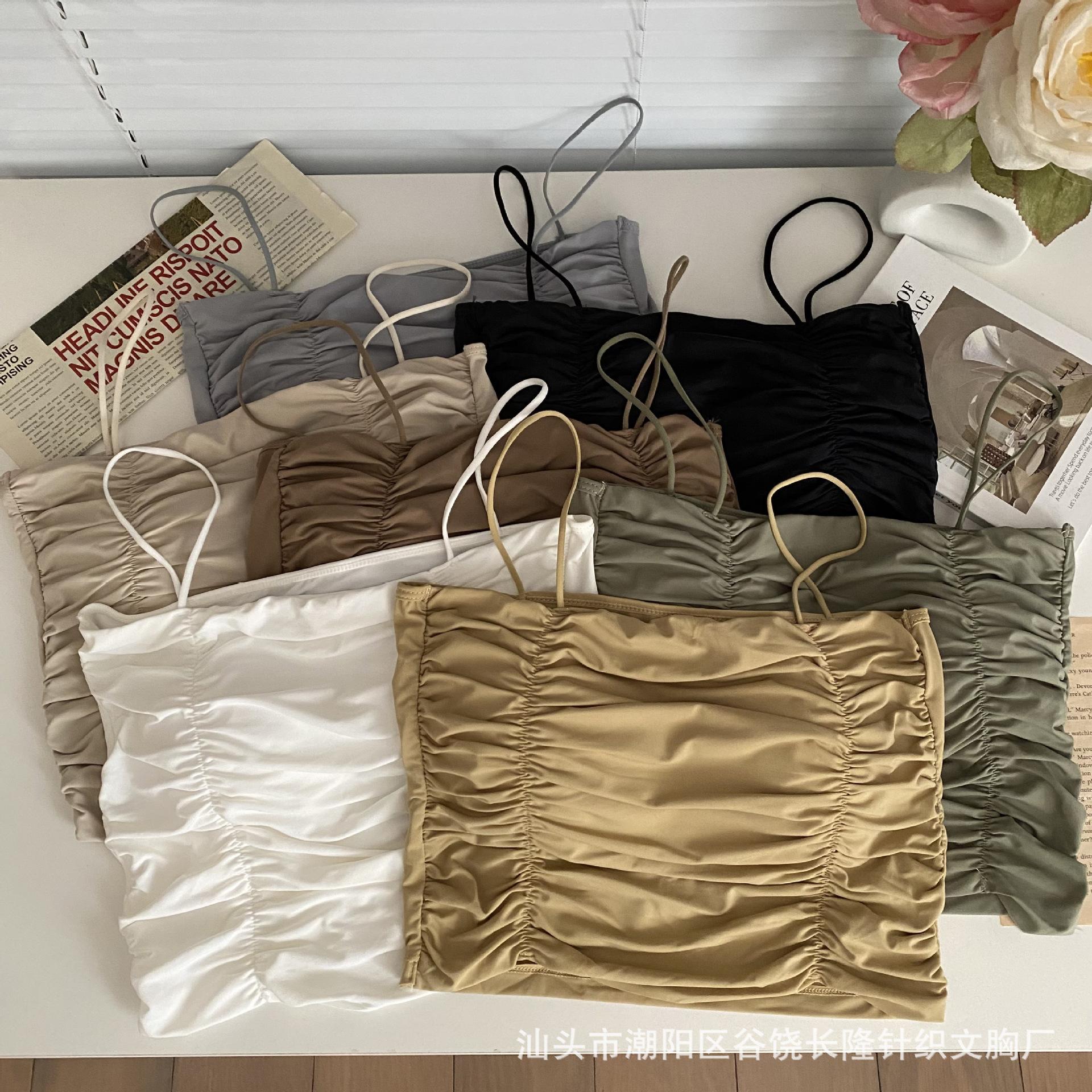 Camiseta de verano con tirantes finos y plisada de seda helada para mujer, elegante, con base interior, ajustada