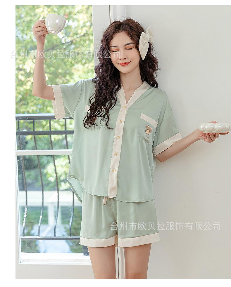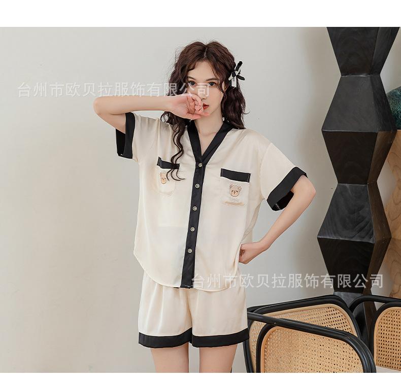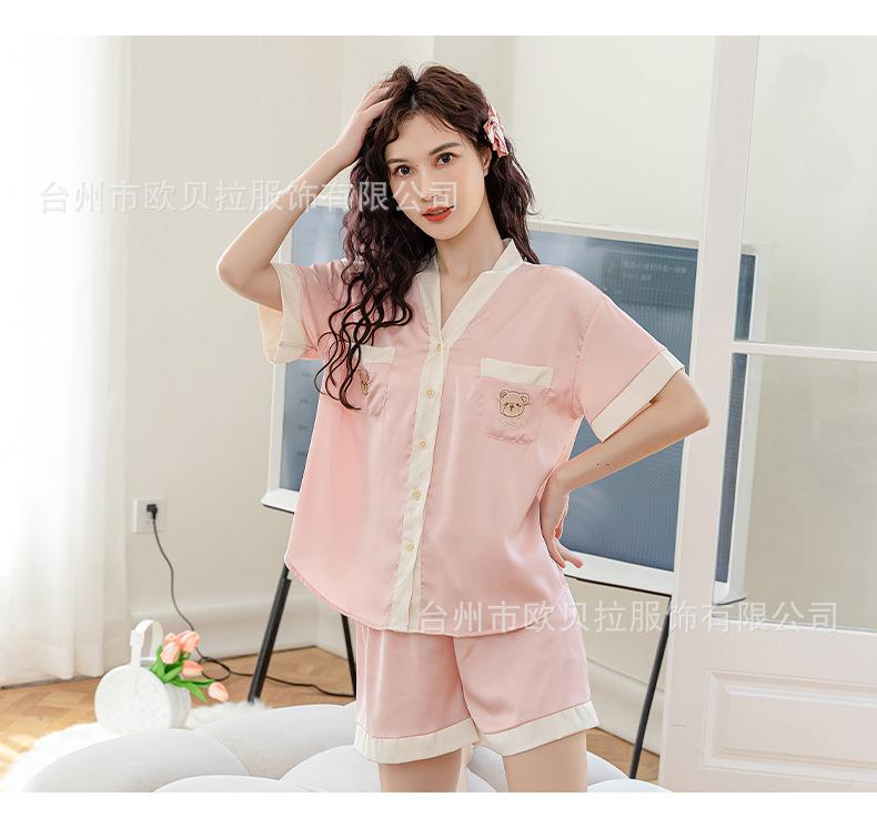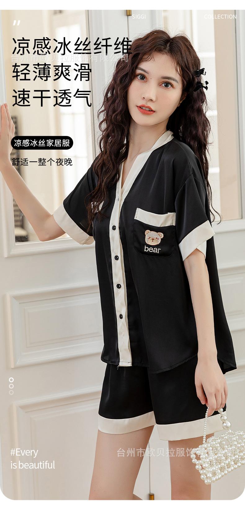 Compra Pijamas de Seda Delgados Dulces y Simples para Mujer Primavera y Verano Seda de Hielo Manga Corta Shorts Estilo Popular en Internet Ropa de Exterior Ropa para el Hogar al por mayor en Joom.pro