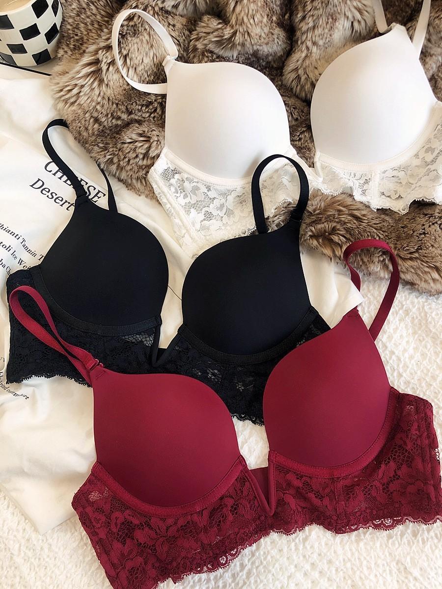 Ropa Interior Sexy de Encaje Nueva Europea y Americana para Mujer Sujetador Push-Up para Pecho Pequeño con Espalda Hermosa Delgada Pecho Grande Pequeño Suave con Aro de Acero