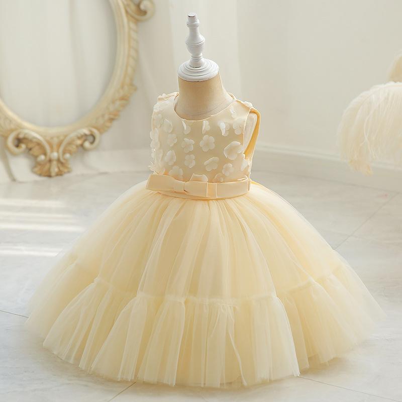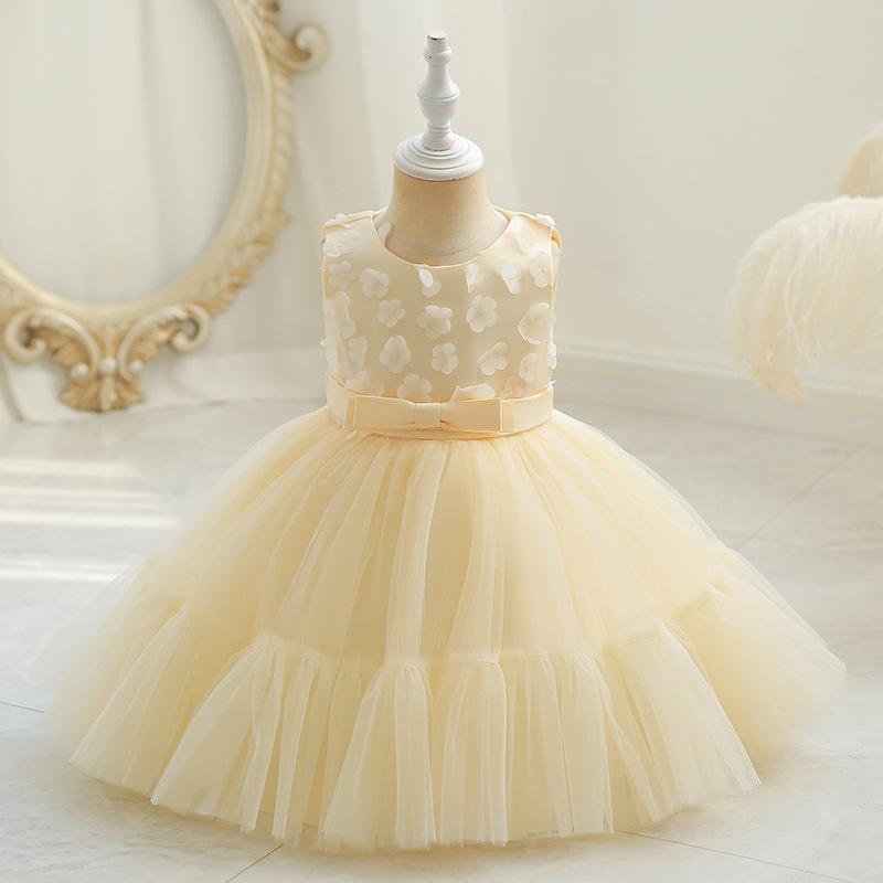 Vestido infantil de Amazon, vestido de princesa hinchado para bebé de un año, vestido de novia con flores para festivales infantiles, vestido de niña para actuaciones.