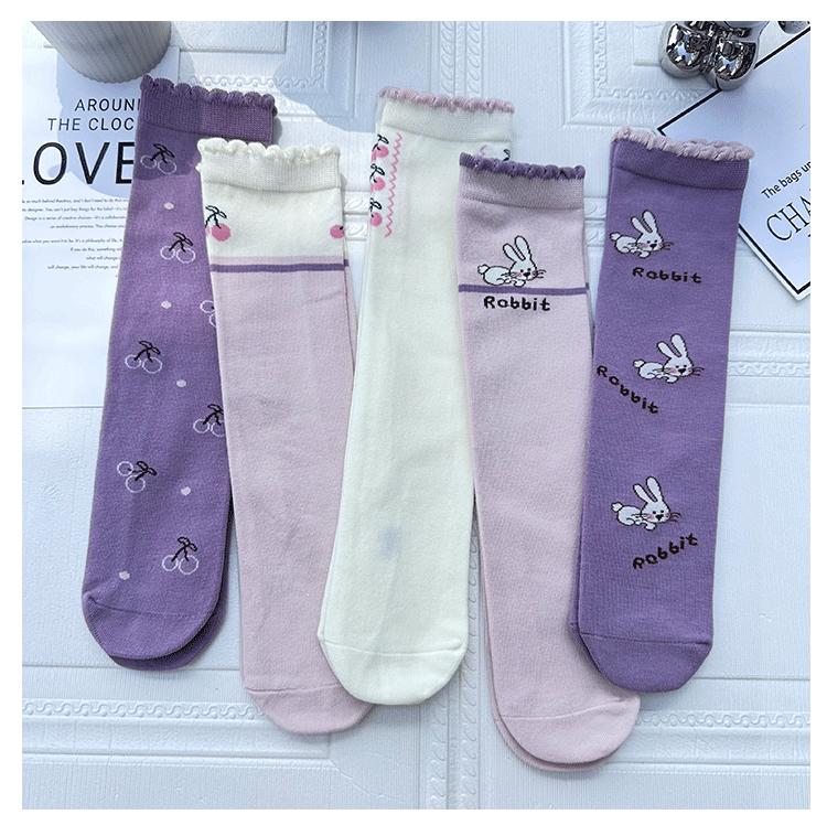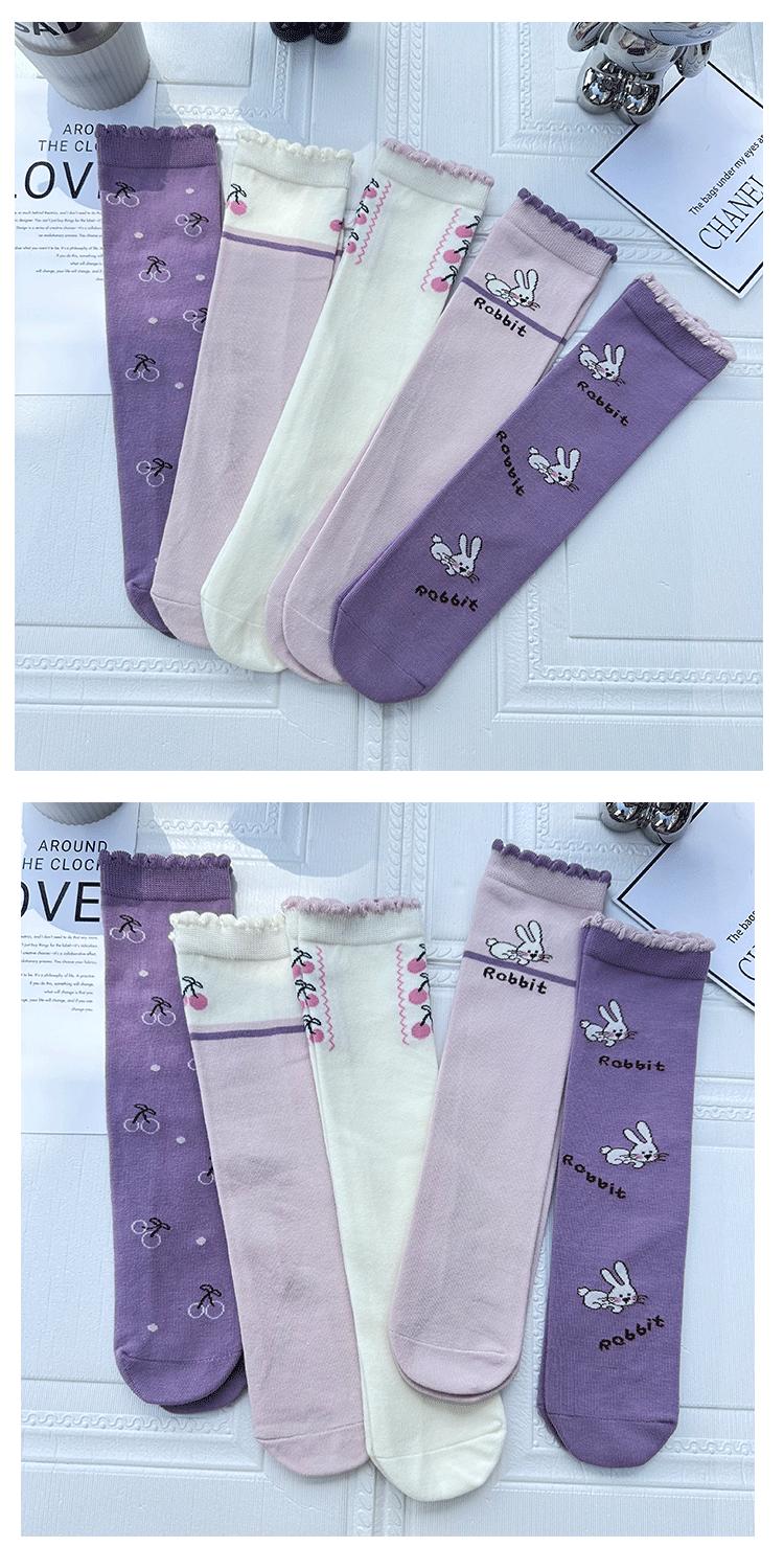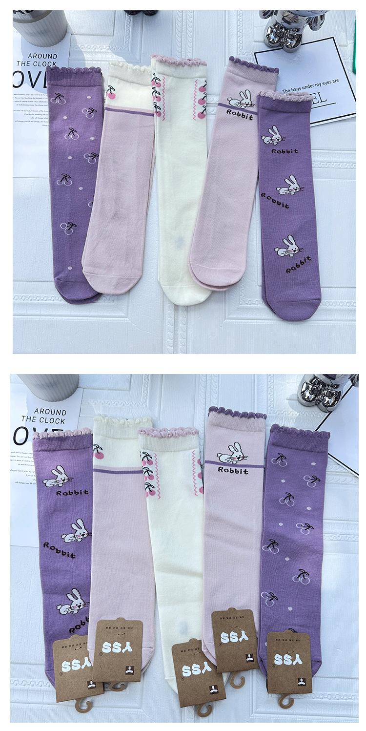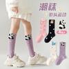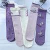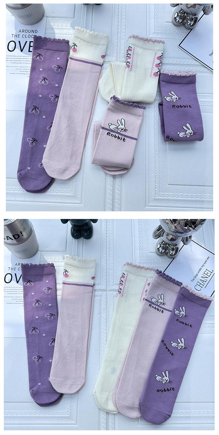 Calcetines dobles para niños, otoño e invierno, nuevos calcetines de conejo de dibujos animados de algodón peinado, estilo coreano, calcetines de pantorrilla sin talón para niñas.
