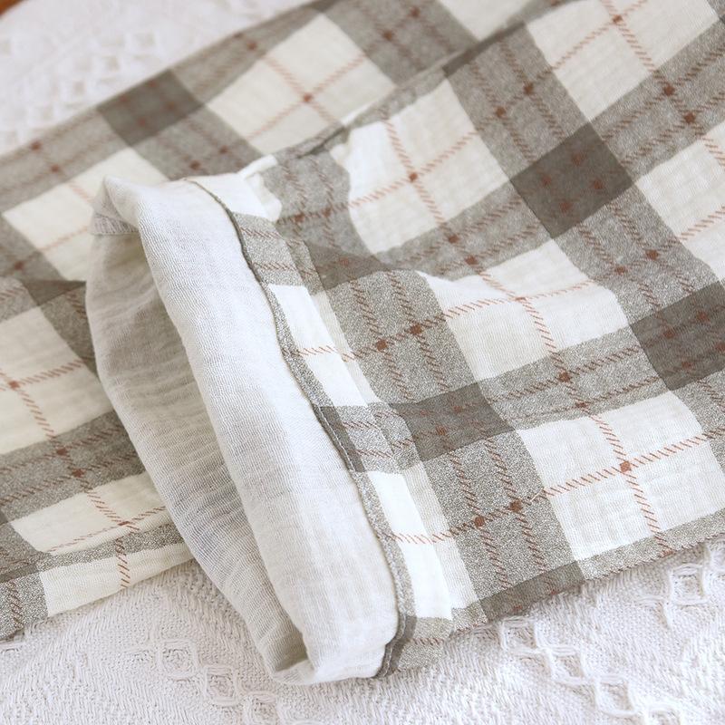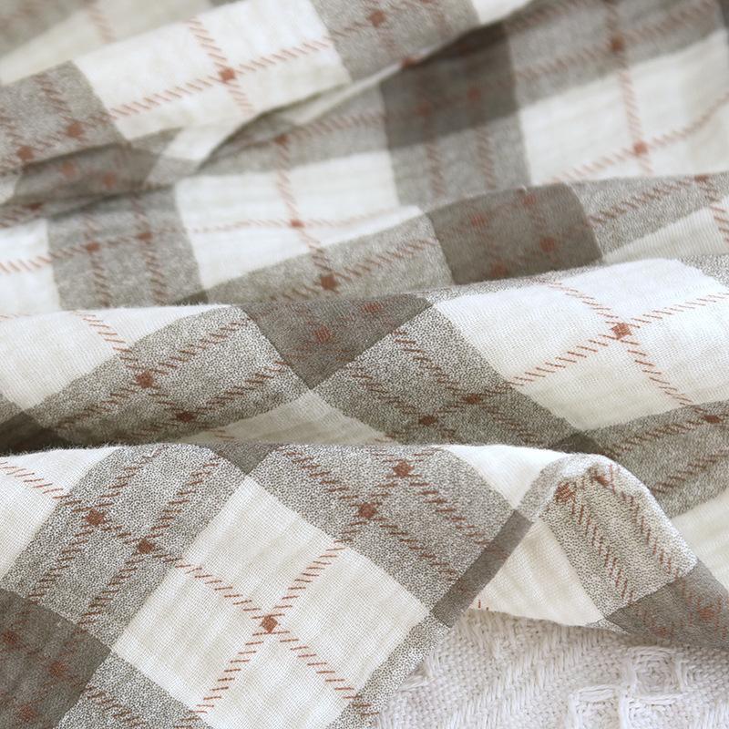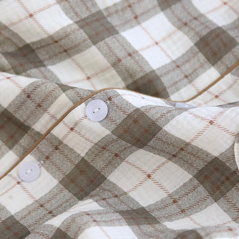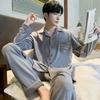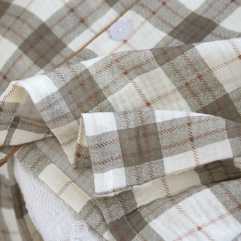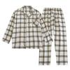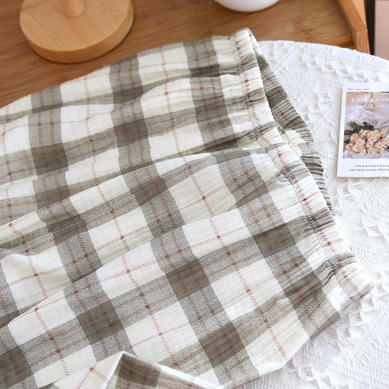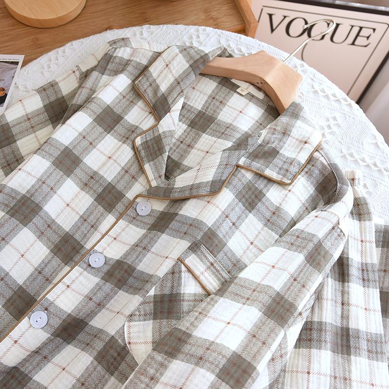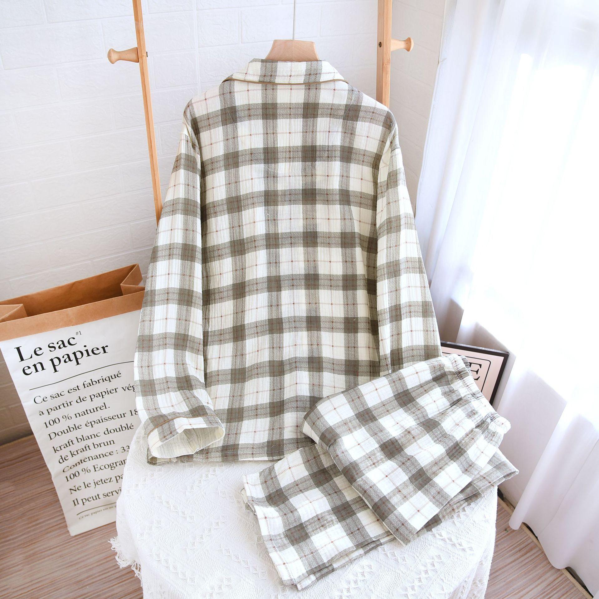 Primavera, Verano y Otoño Cuatro Estaciones Nuevo Traje de Pijama de Cuadros de Crepé para Hombre Hilado de Algodón de Doble Capa Ropa para el Hogar Casual y Sencilla