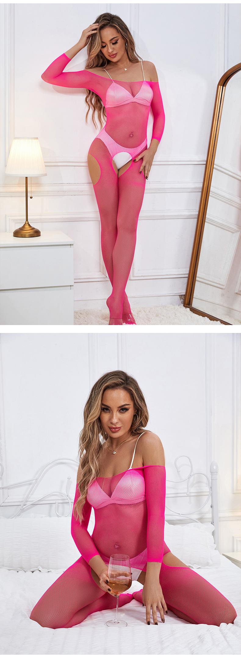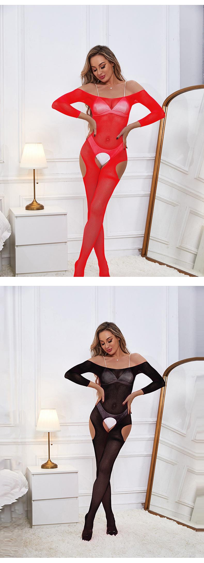 Mono ajustado sexy de lencería transparente de tentación fina colgante abierto hueco europeo y americano