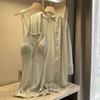 Primavera e Verão Nova Imitação Pijamas de Seda Renda Senhora com Almofada de Peito Bordado Sexy Sling Camisola Mid-Length Home Clothes