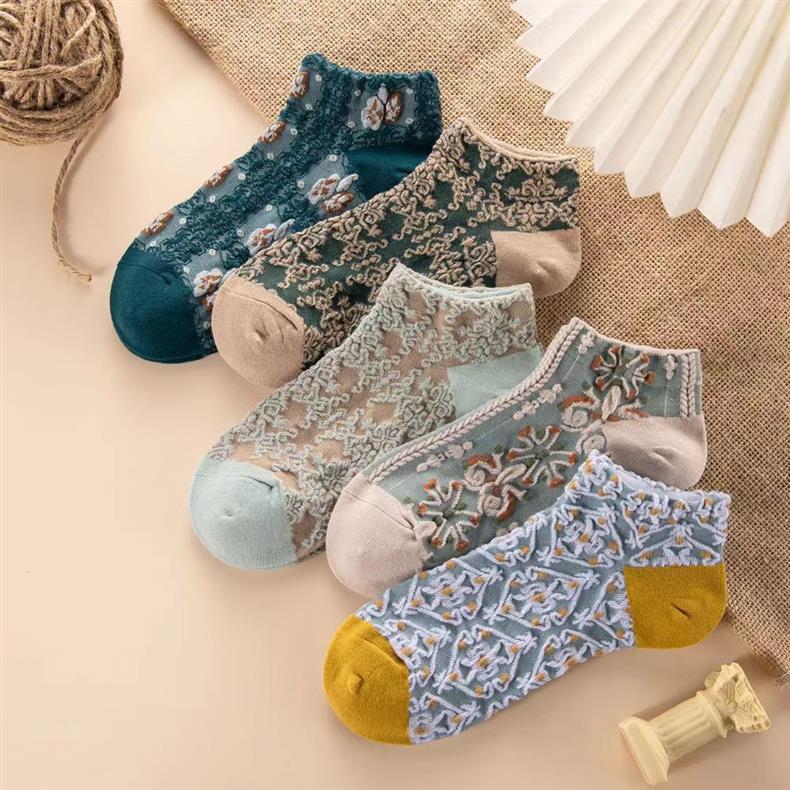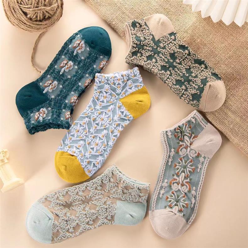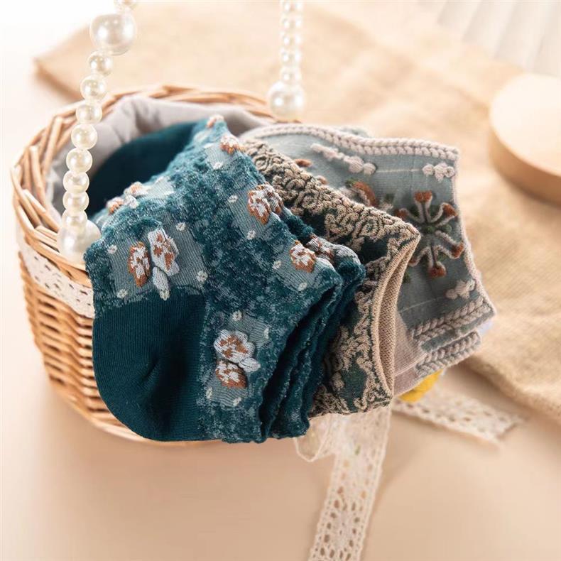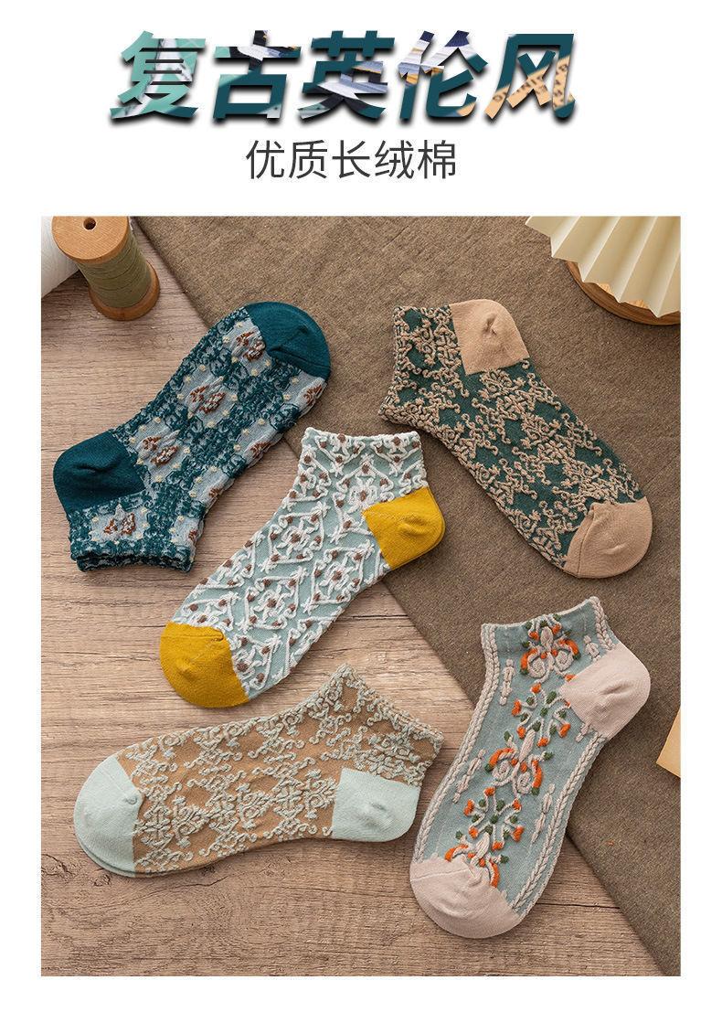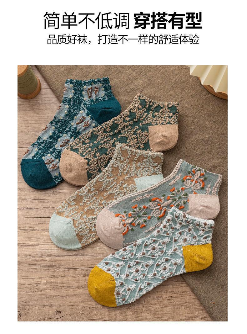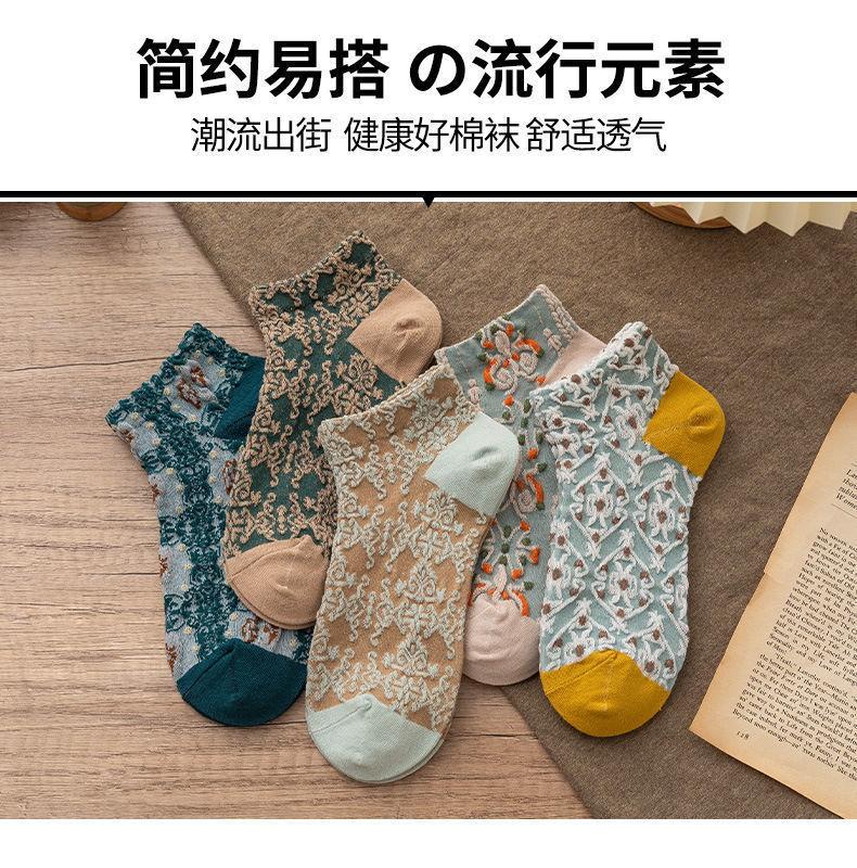 Calcetines vintage con relieve tridimensional para mujer, calcetines de tubo medio estilo Mori, populares en línea, nuevos calcetines náuticos de primavera y verano, calcetines cortos y poco profundos para mujer.
