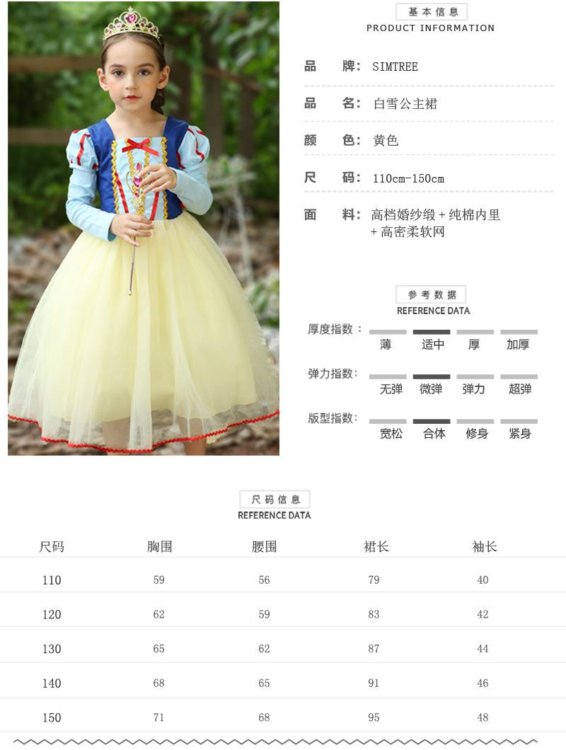 Ropa Infantil de Comercio Exterior Vestido de Niña Otoño e Invierno Nuevo Vestido de Princesa Vestido de Blancanieves Disfraz de Actuación de Halloween