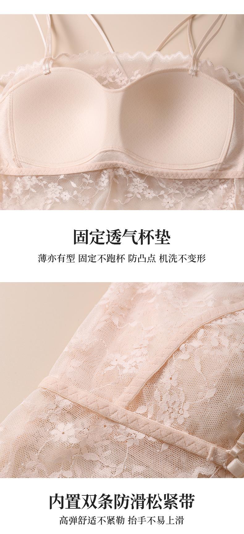 2024 top de tubo de encaje de alta calidad ropa exterior ropa interior de espalda hermosa de una pieza copa fija pecho envuelto Damas Antiexposición