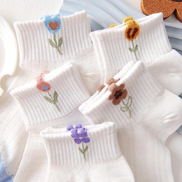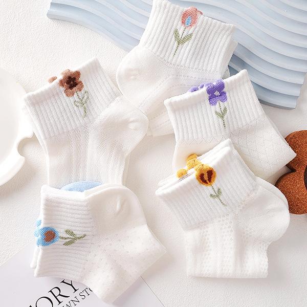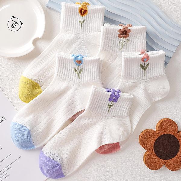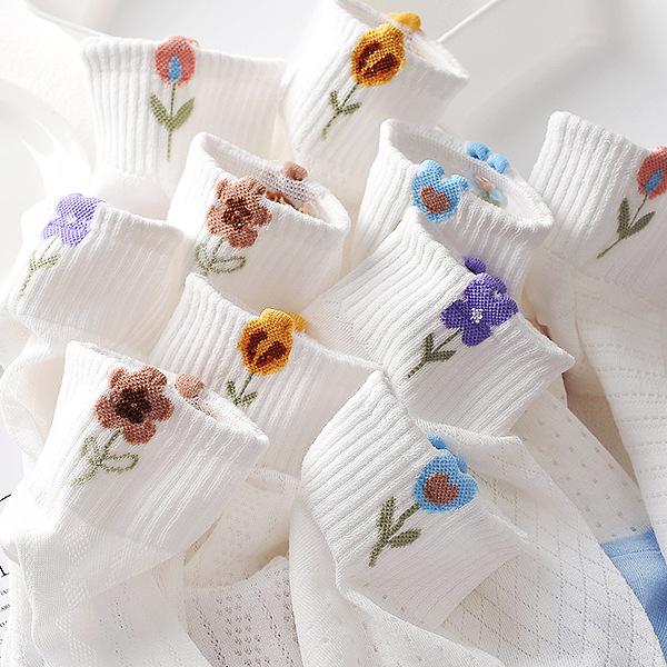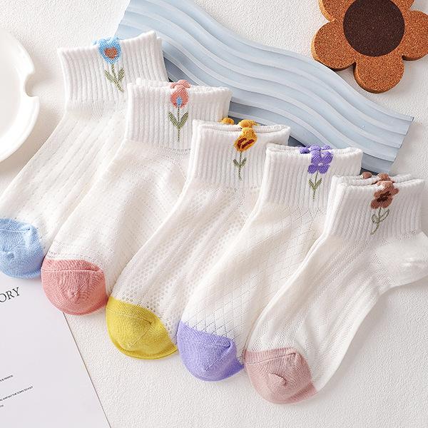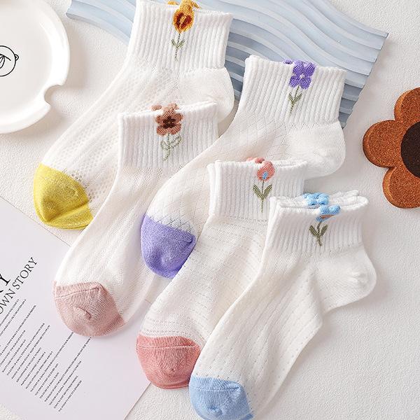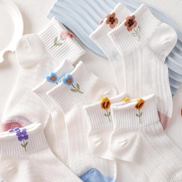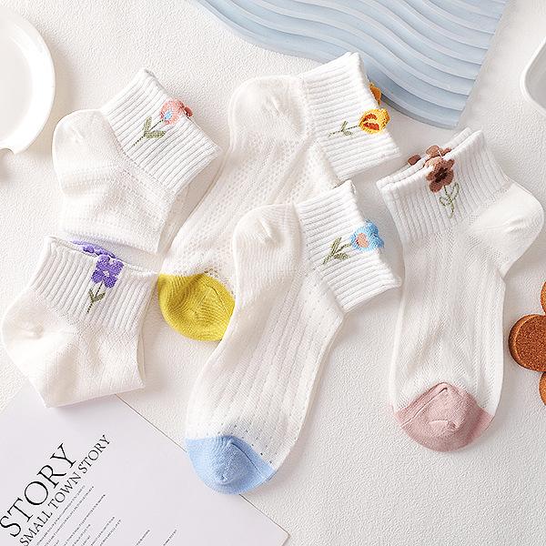 Compra Calcetines blancos para mujer, calcetines cortos para mujer, calcetines náuticos finos y transpirables de verano con diseño de flores pequeñas y poco profundos. al por mayor en Joom.pro