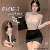 Uniforme Sexy, Falda Ajustada a la Cadera, Uniforme de Secretaria Sexy, Tentador Escote Profundo en V, Encaje que Expone el Busto, Juego de Roles de Deseo Puro Qqn