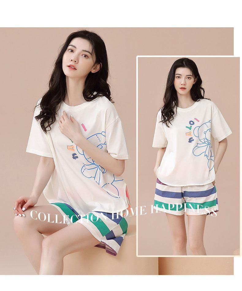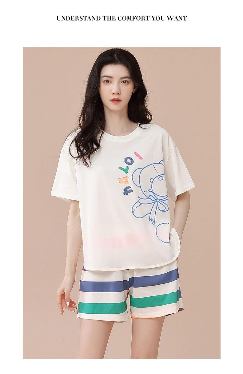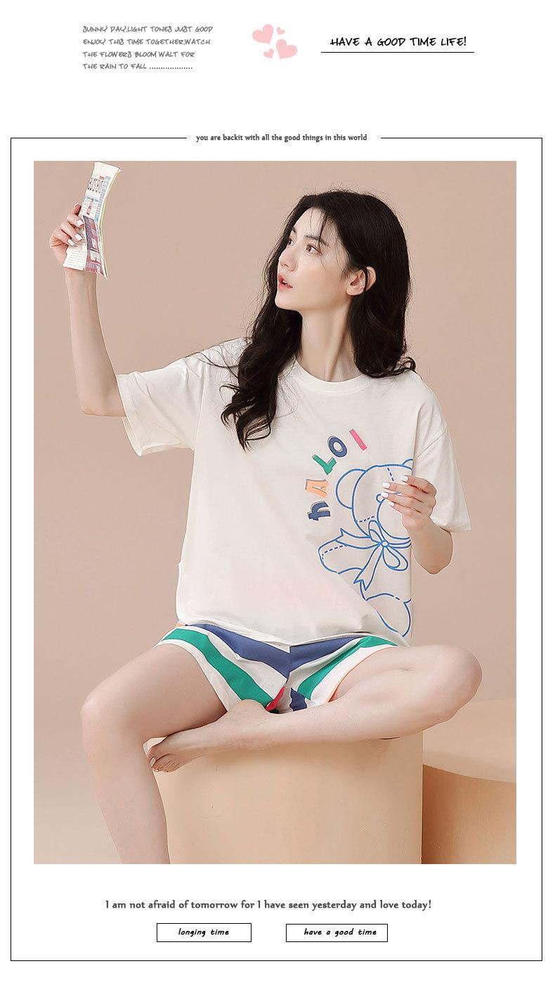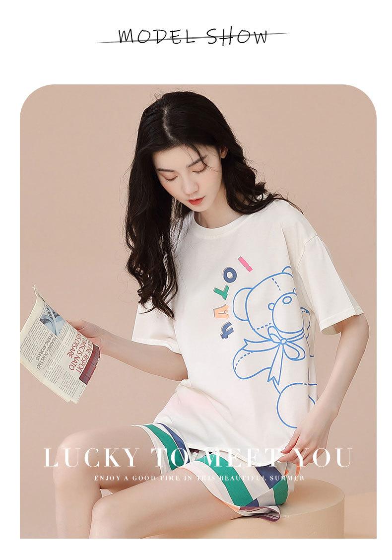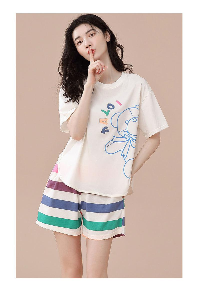 Pijamas de verano para mujer, nuevos pantalones cortos de algodón con dibujos animados, ropa de casa, traje fino y transpirable de dos piezas