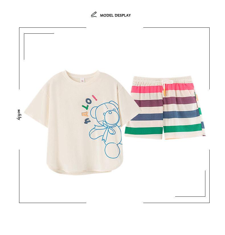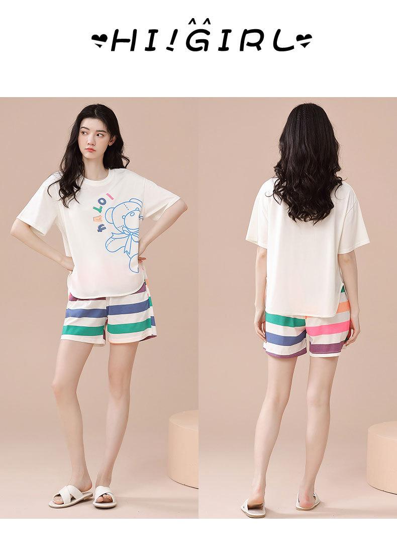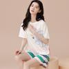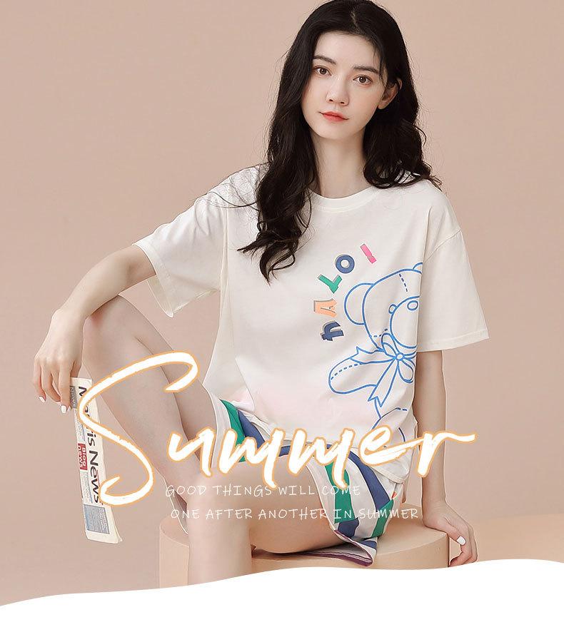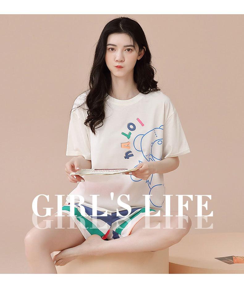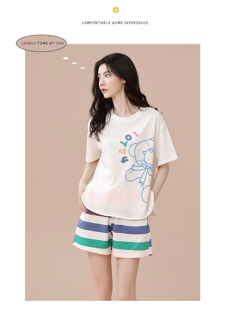 Pijamas de verano para mujer, nuevos pantalones cortos de algodón con dibujos animados, ropa de casa, traje fino y transpirable de dos piezas