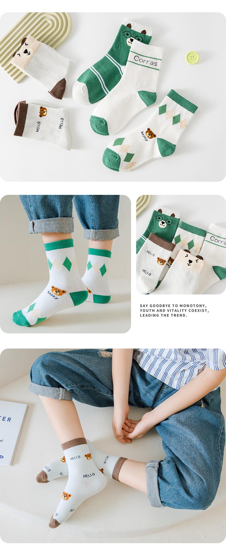 Calcetines de Media Caña para Niños Casuales Versátiles Calcetines de Oso de Dibujos Animados Primavera 2024 Nuevos Calcetines para Niños y Niñas al Por Mayor