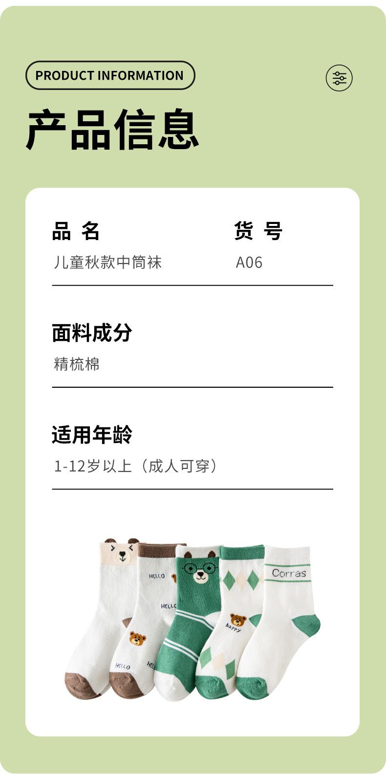 Material de calcetines para niños