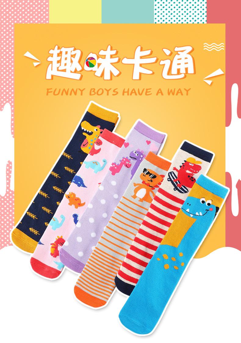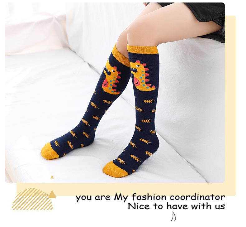 Primavera y Otoño Nuevo Calcetines de Moda de Dibujos Animados de Dinosaurios para Niños Calcetines de Media Caña Rectos Sin Talón Calcetines hasta la Rodilla Calcetines para Niños al por Mayor