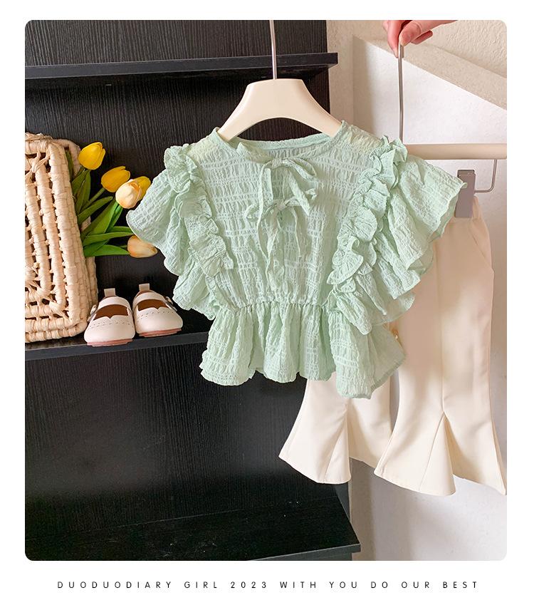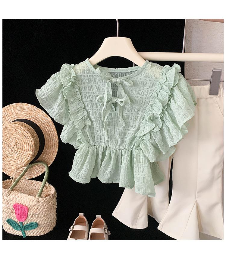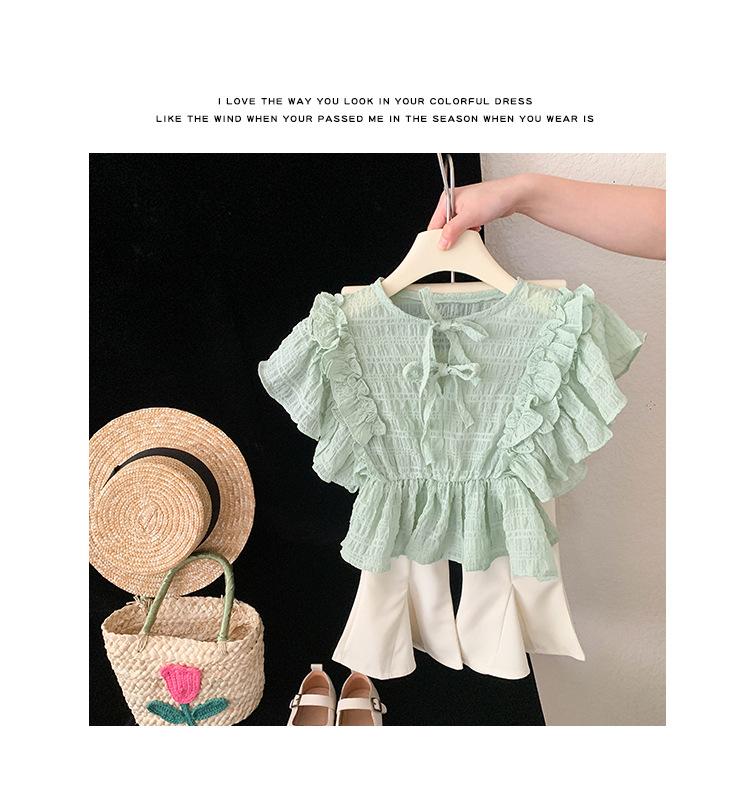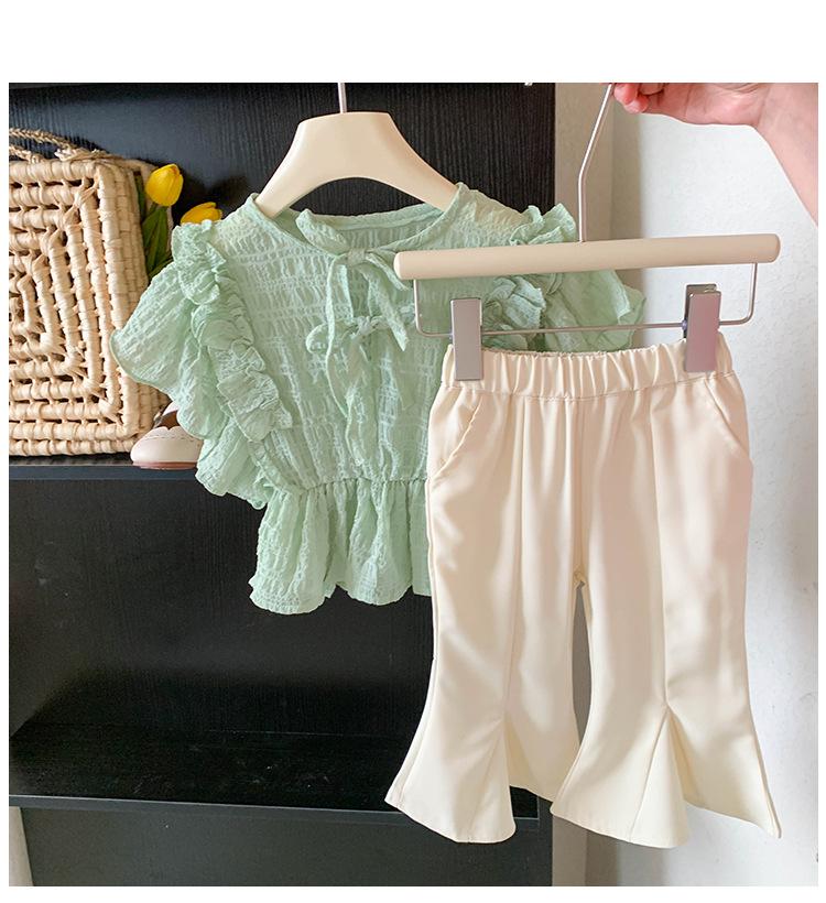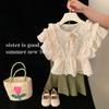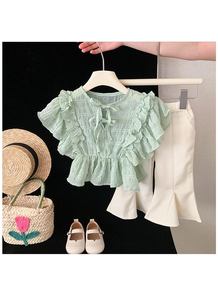 Traje de verano para niña 2023, nuevo conjunto de dos piezas de top y pantalón de estilo coreano a la moda para niña.
