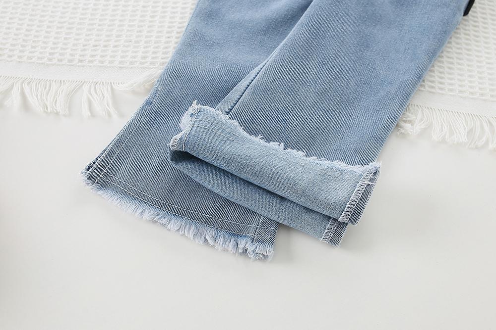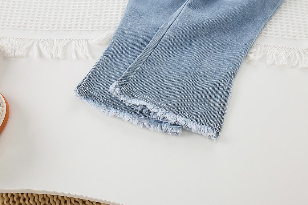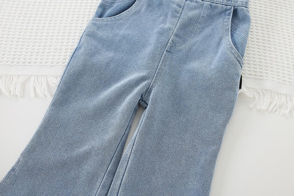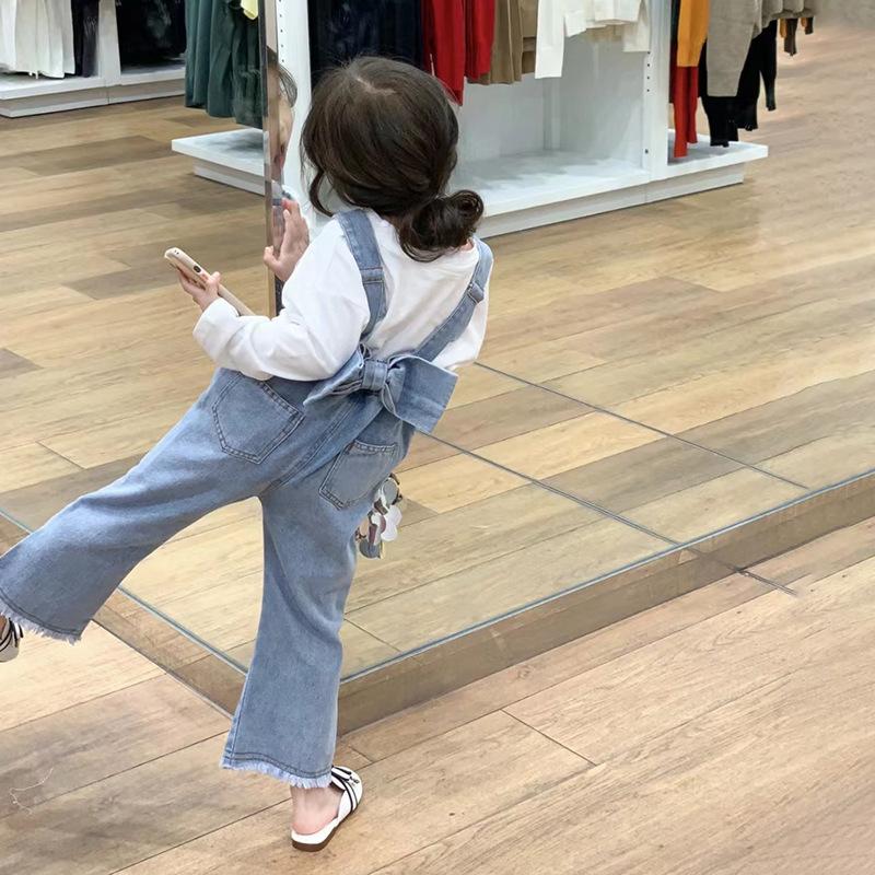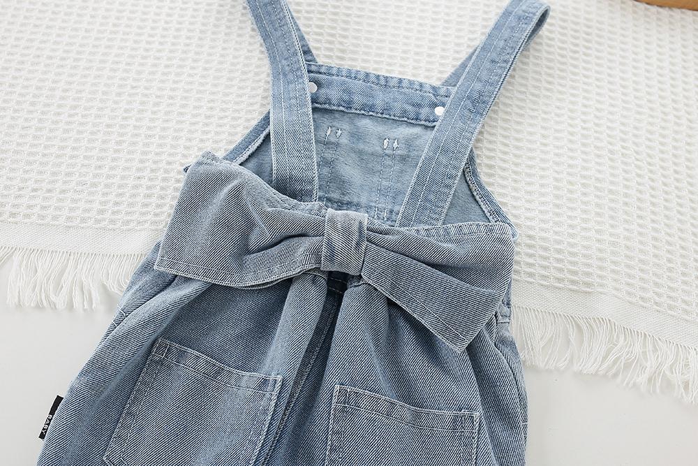 Traje de niña, primavera 2023, nuevo, para niños, pantalones vaqueros con tirantes, camiseta blanca, traje de estilo occidental de moda, estilo coreano