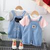 Trajes para niñas 2023 primavera nuevos overoles de mezclilla para niños camiseta blanca traje coreano de moda