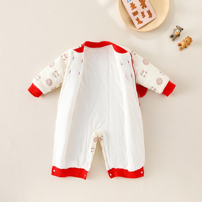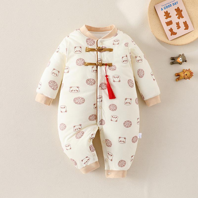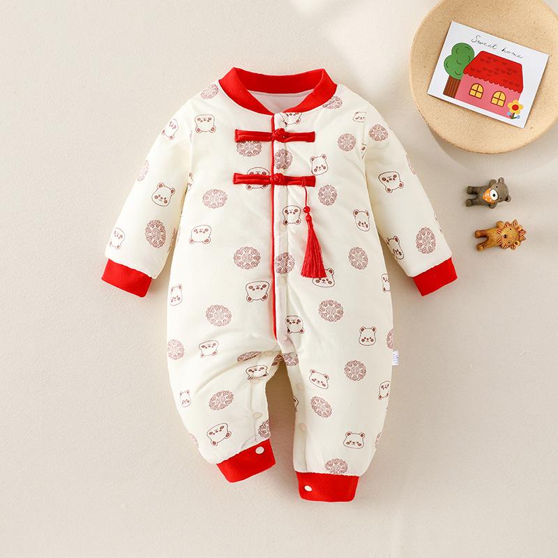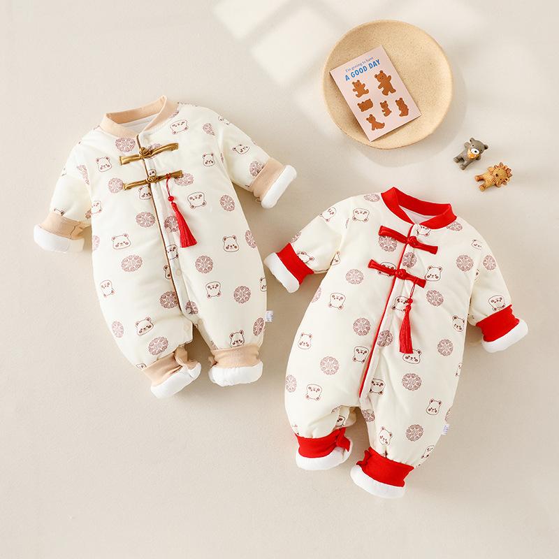 Ropa de invierno de estilo chino para recién nacidos, gruesa y acolchada de algodón, ropa de bebé, ropa de luna llena, mono sin hueso para bebé niño y niña, algodón fino