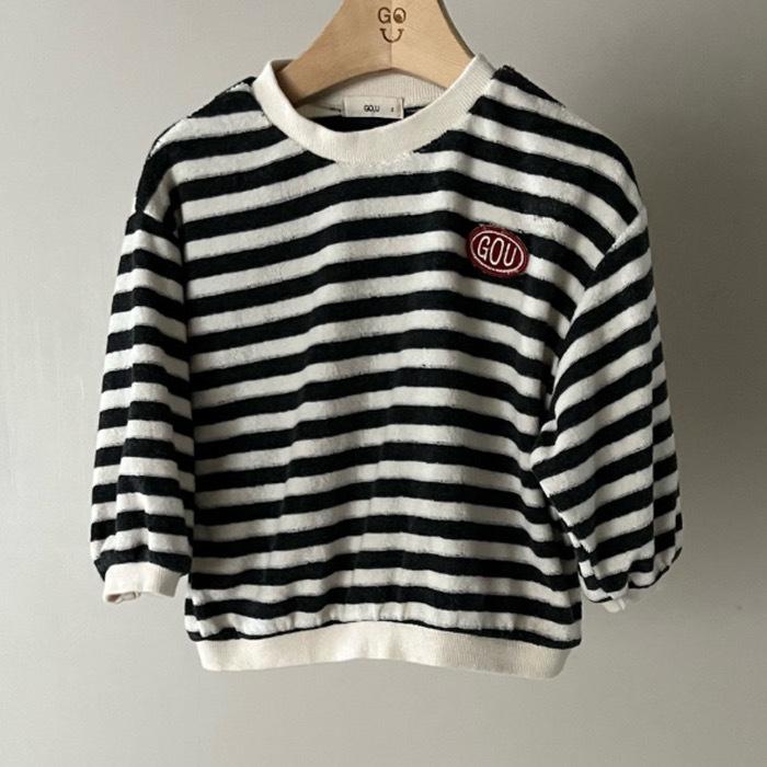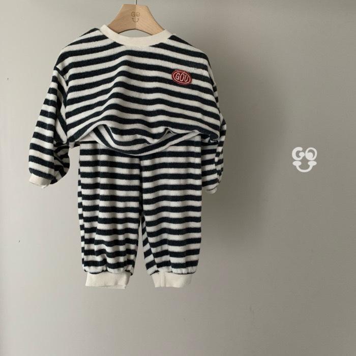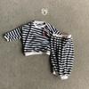 Ropa de otoño e invierno para bebé, ropa de otoño e invierno para bebé, ropa infantil de estilo coreano, traje de terciopelo a rayas para bebé nuevo de invierno 2023