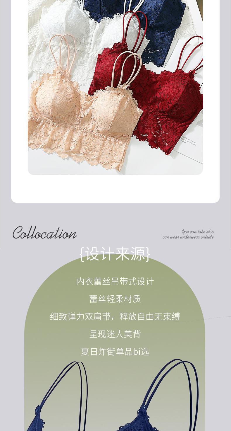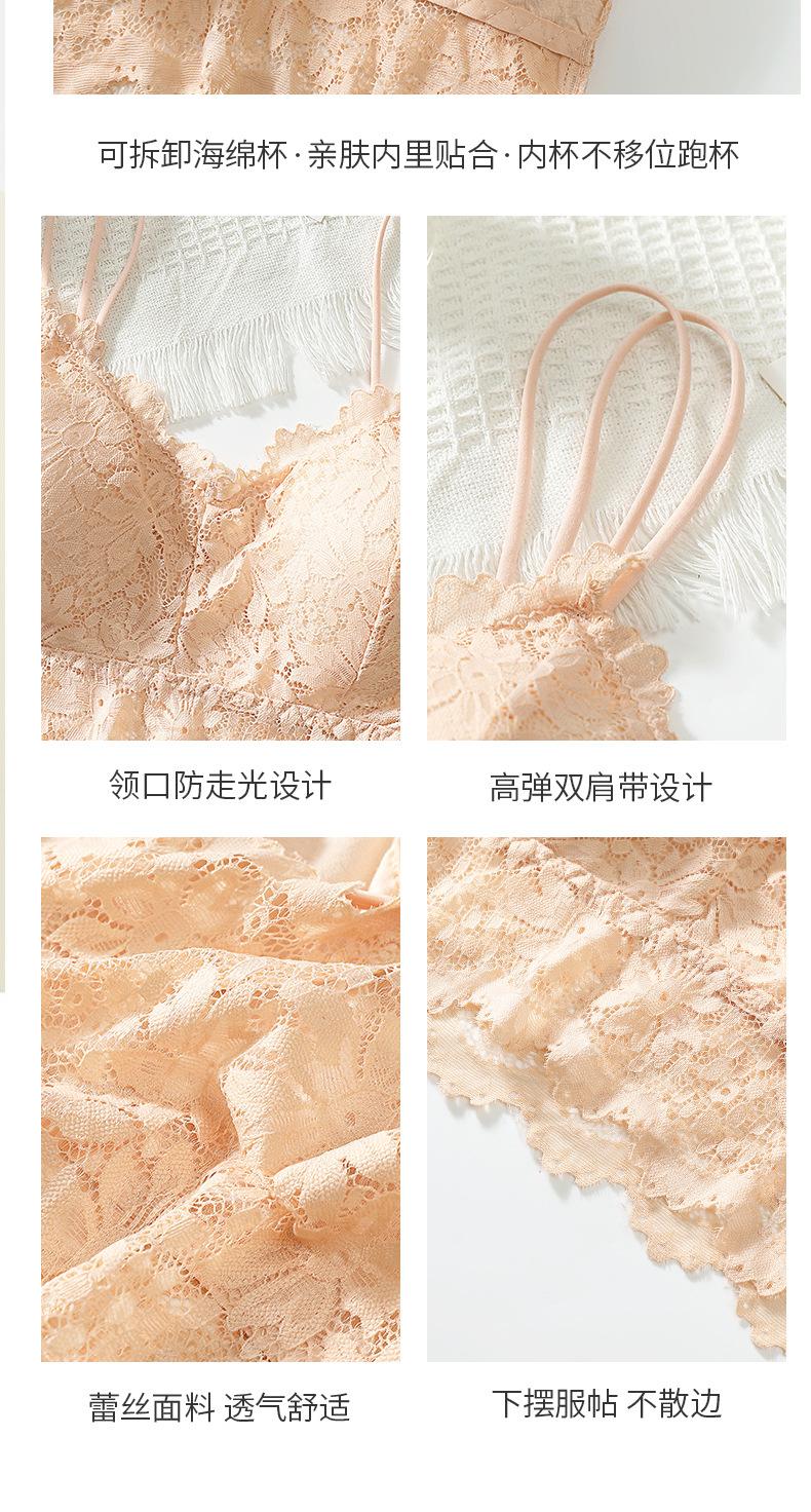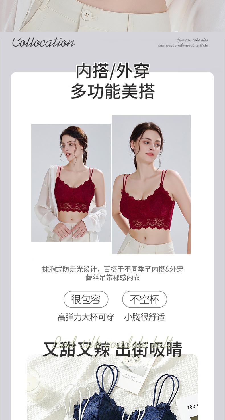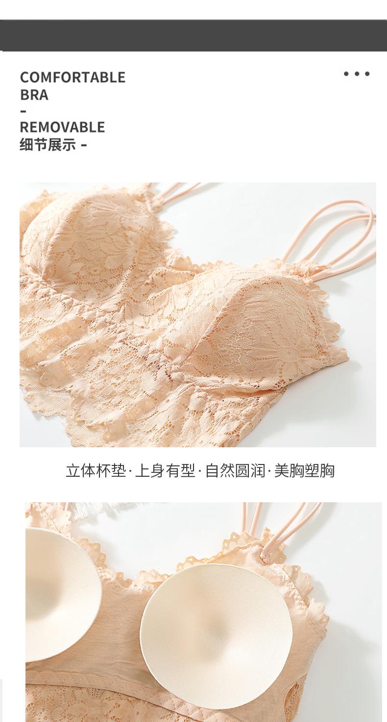 Suministro hermoso encaje trasero envolvente pecho sexy camisola base anti-luz ropa interior de niña delgada