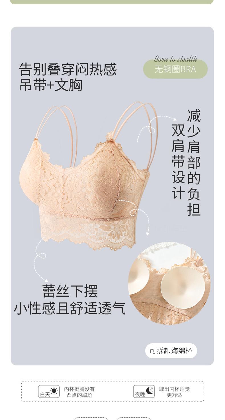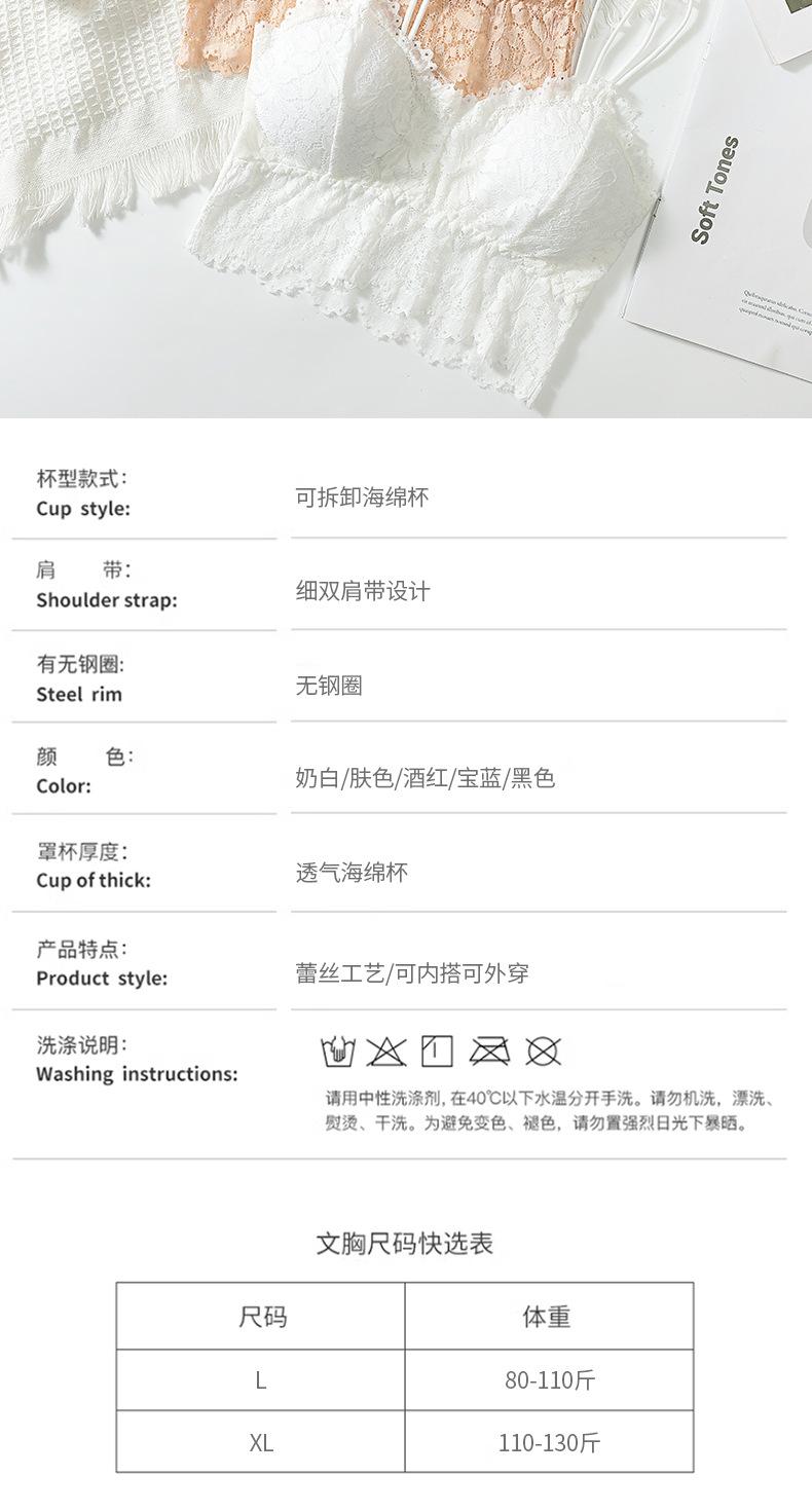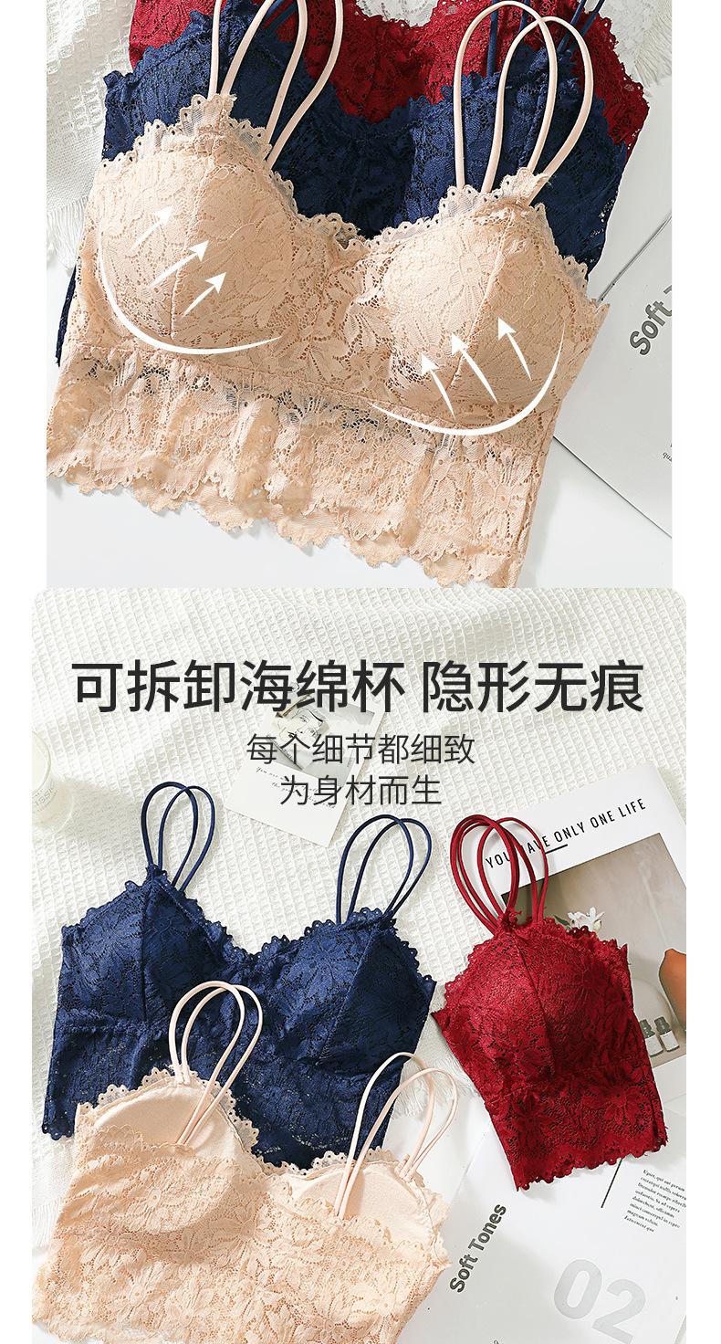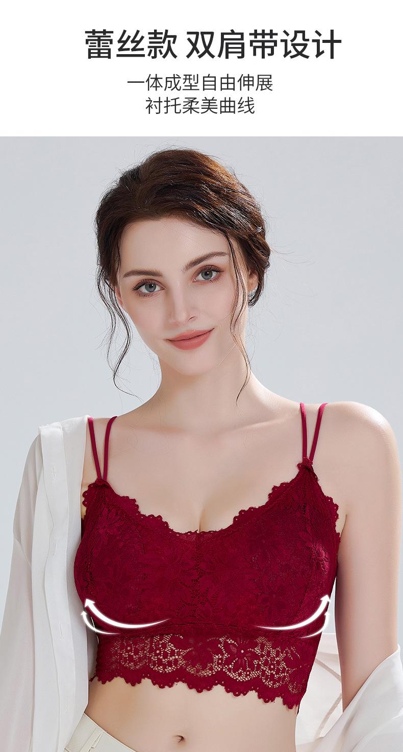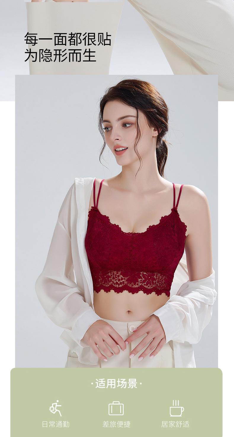 Suministro hermoso encaje trasero envolvente pecho sexy camisola base anti-luz ropa interior de niña delgada