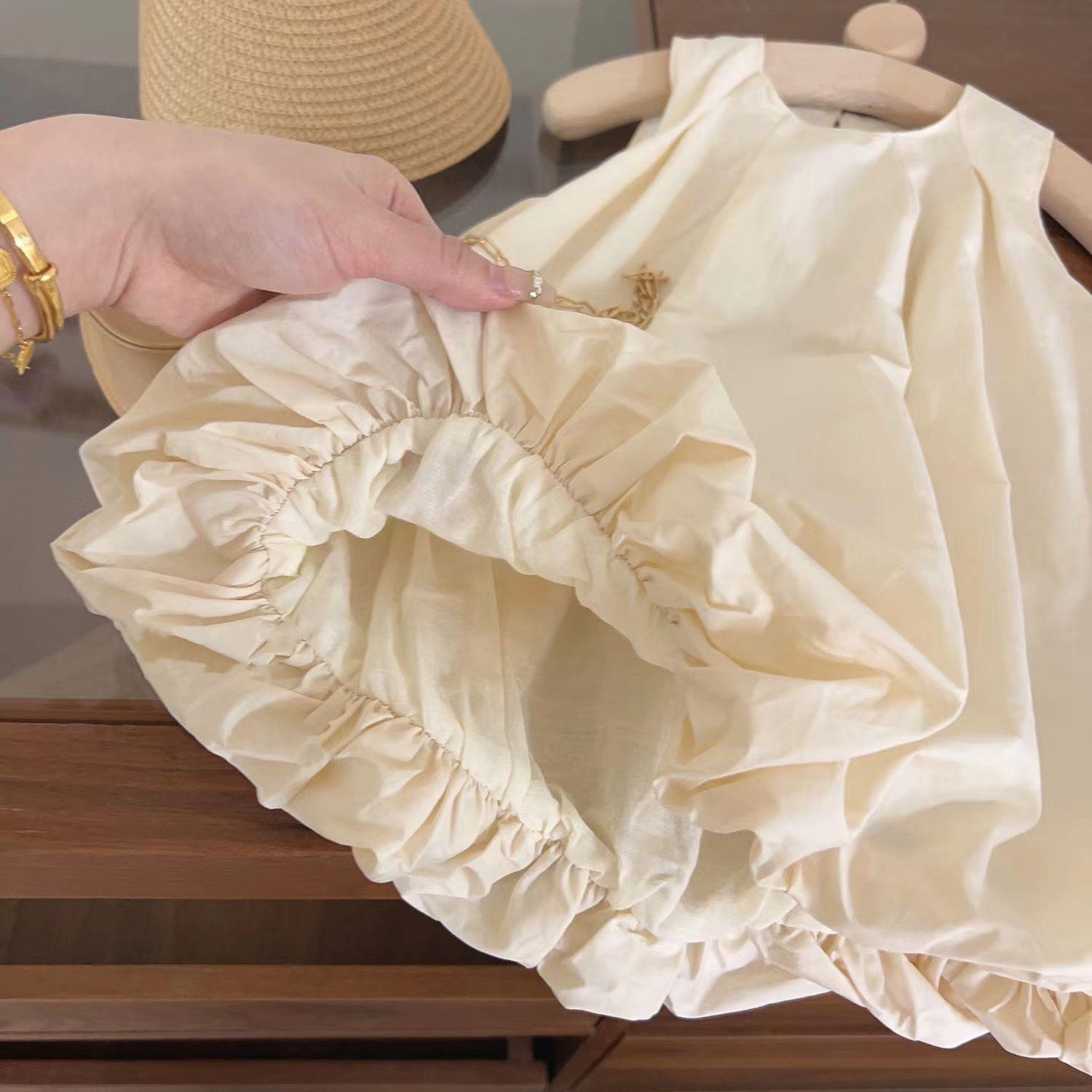 Vestido de verano 2024 con estampado floral, estilo occidental, sin mangas, para niñas pequeñas