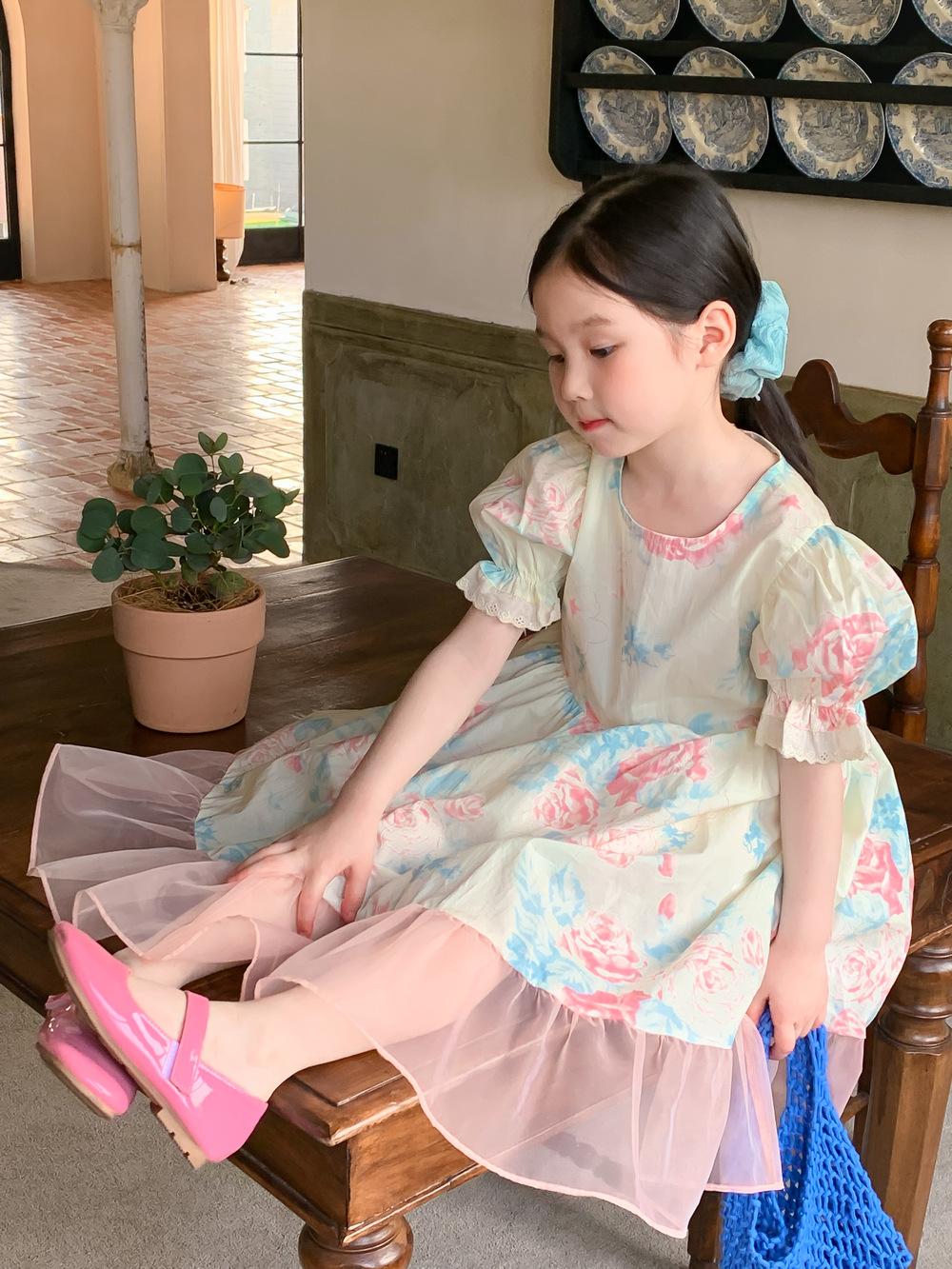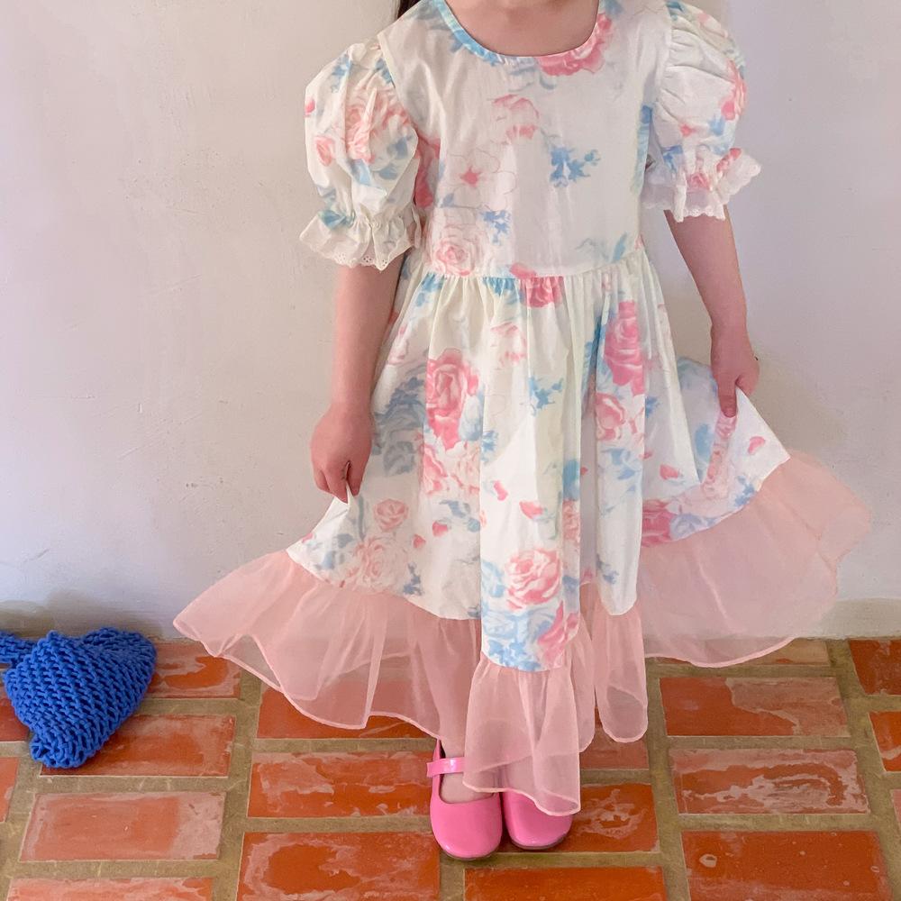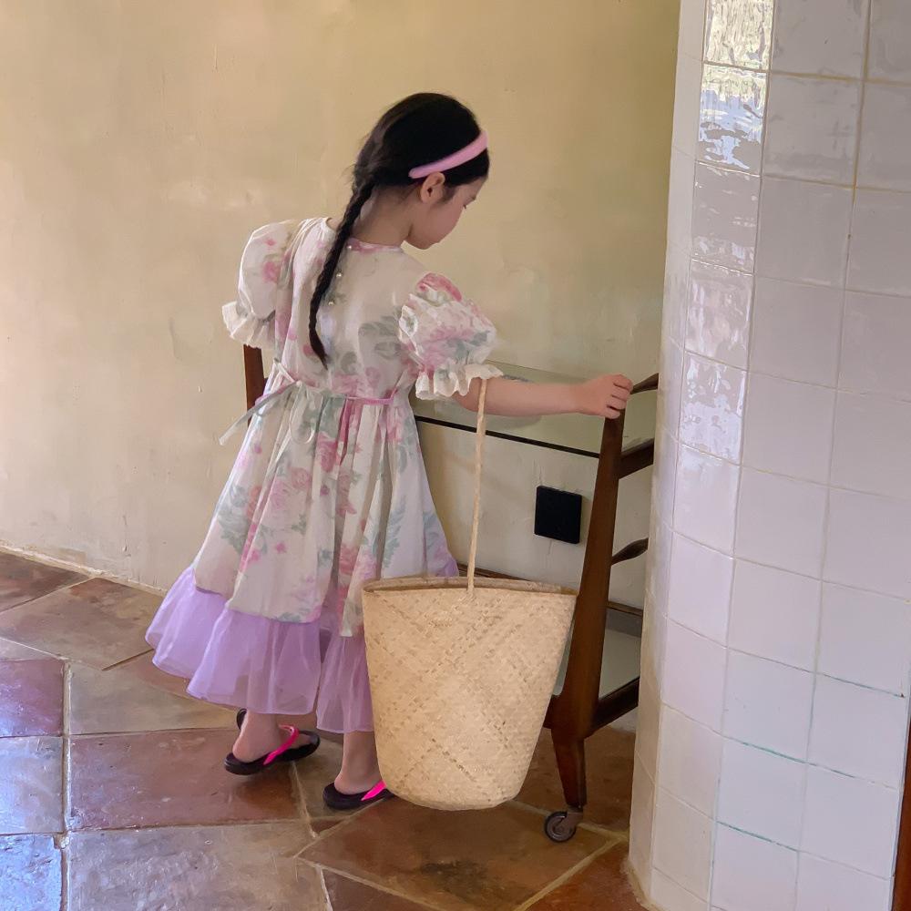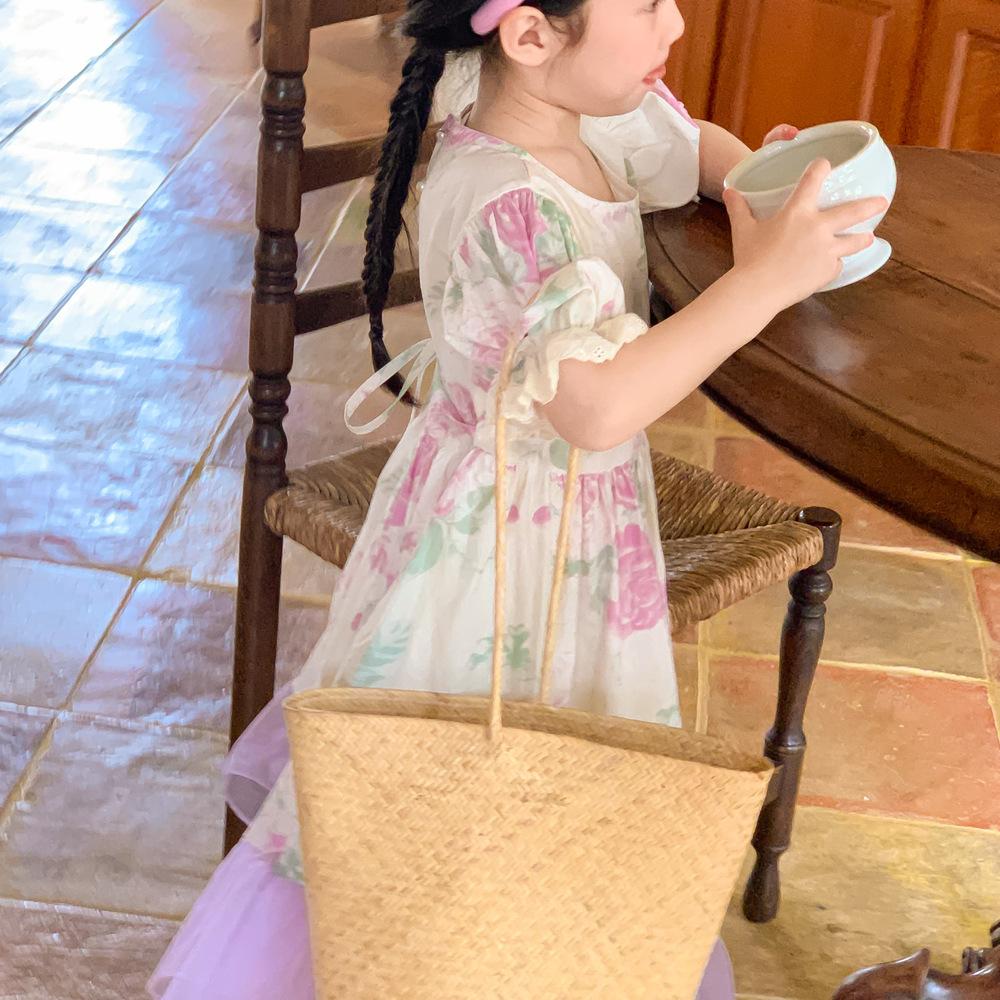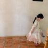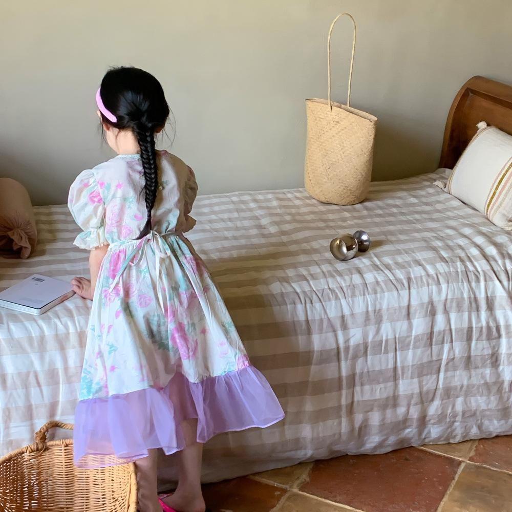 Falda para Niñas 2025 Verano Niñas Estilo Coreano Pintura de Tinta Vestido Manga Abullonada Falda de Princesa Patchwork para Niñas Mo Xiaomeng