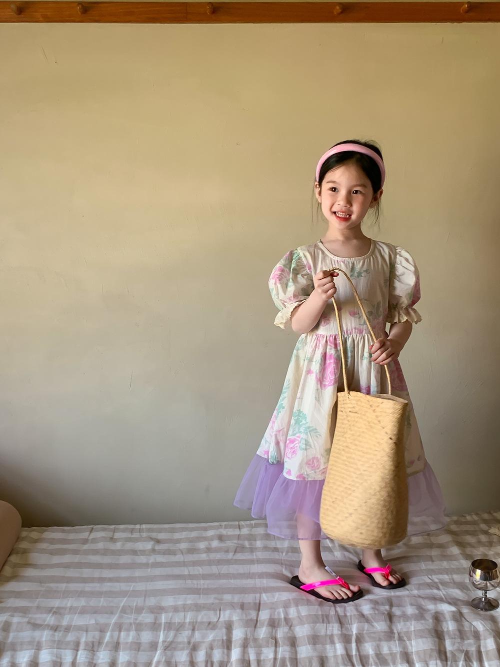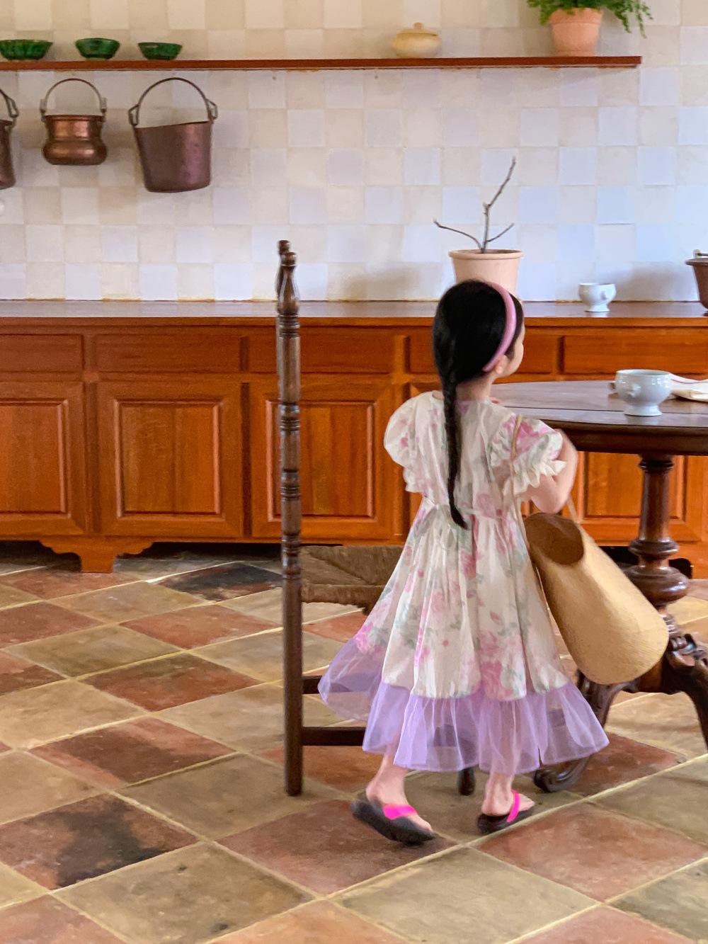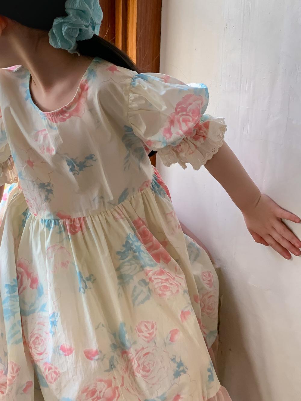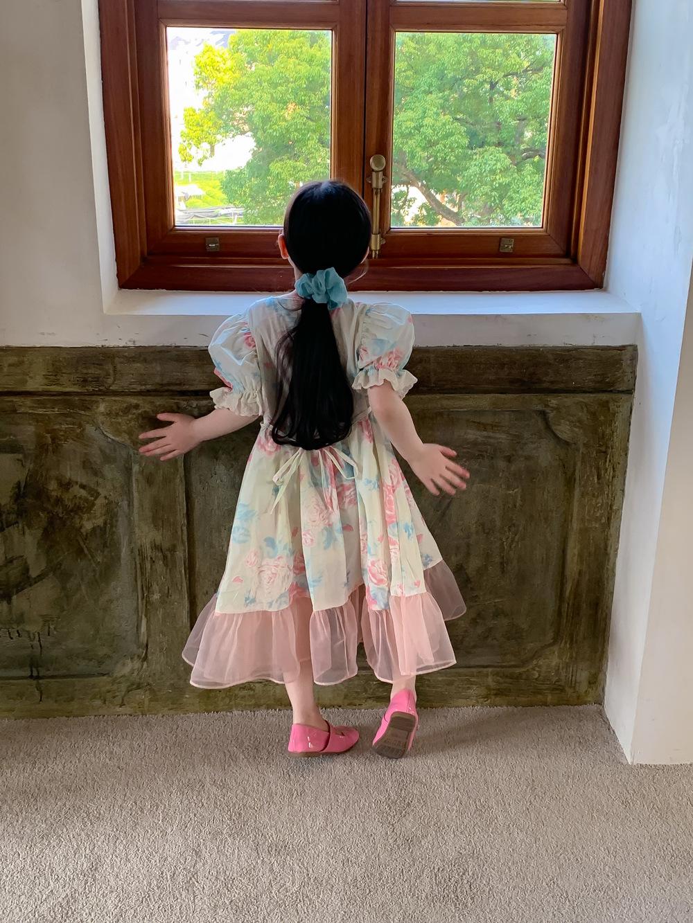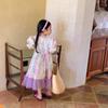 Falda para Niñas 2025 Verano Niñas Estilo Coreano Pintura de Tinta Vestido Manga Abullonada Falda de Princesa Patchwork para Niñas Mo Xiaomeng