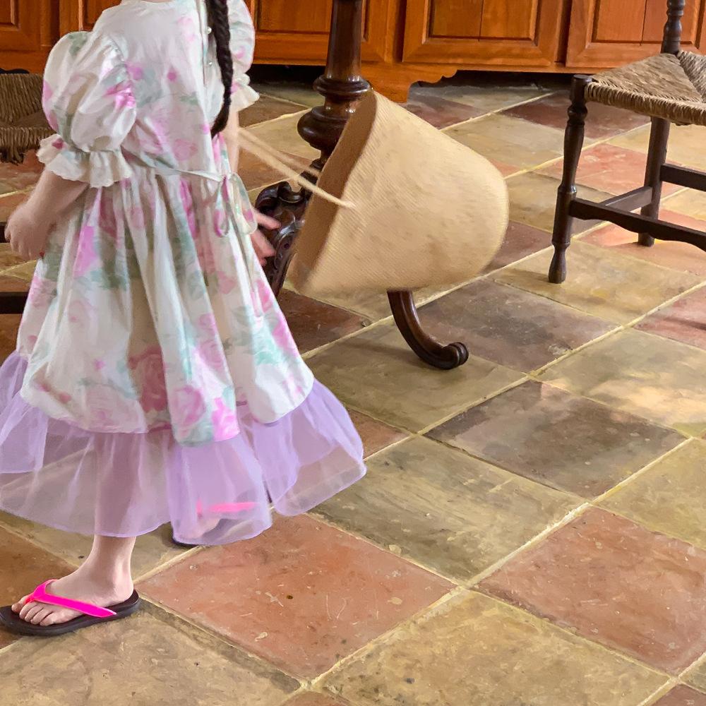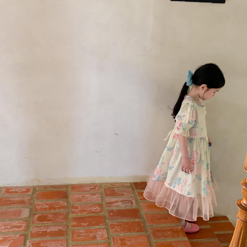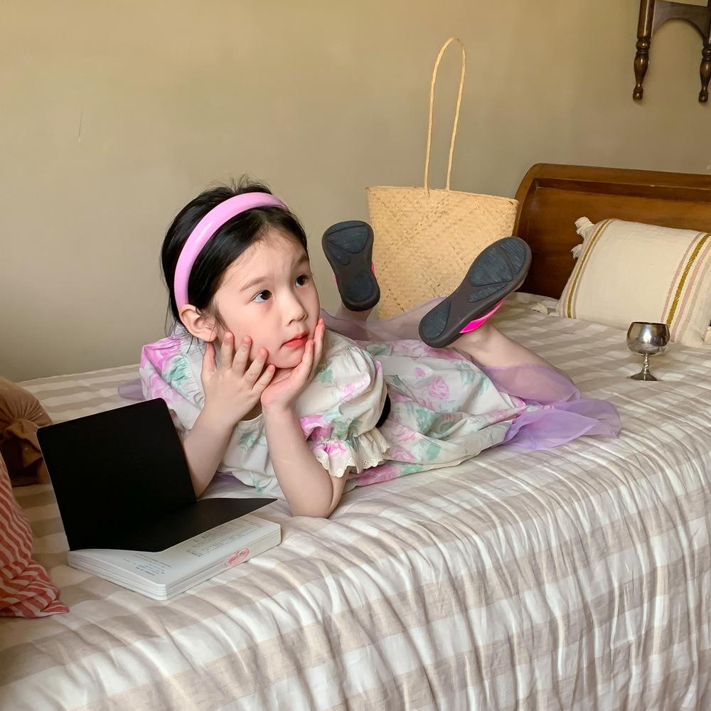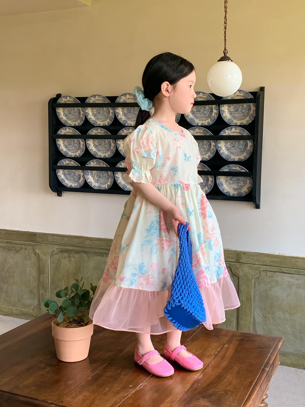 Falda para Niñas 2025 Verano Niñas Estilo Coreano Pintura de Tinta Vestido Manga Abullonada Falda de Princesa Patchwork para Niñas Mo Xiaomeng