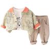 Traje de primavera para niños 2024, nuevo traje de primavera y otoño para niños, estilo occidental, traje de tres piezas de manga larga para bebés.