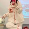 Pijama de invierno para mujer cárdigan felpa fresa oso bordado pantalones de manga larga traje cálido para estar en casa se puede usar afuera