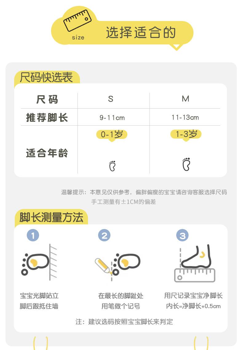 S size foot length 9-11cm about 0-12 months, M size foot length 11-13cm about 1-3 years old