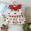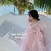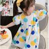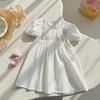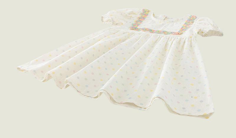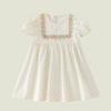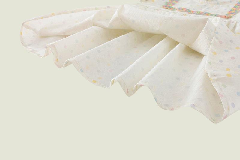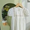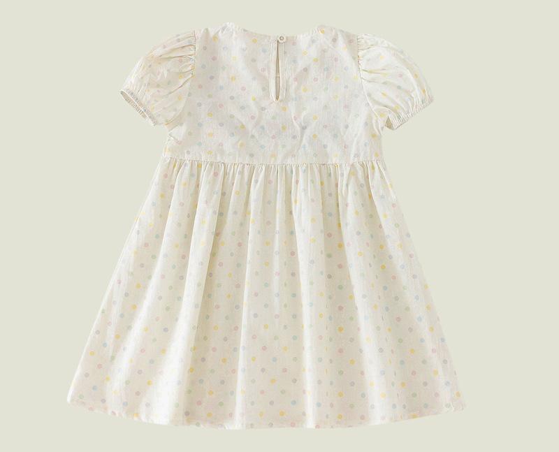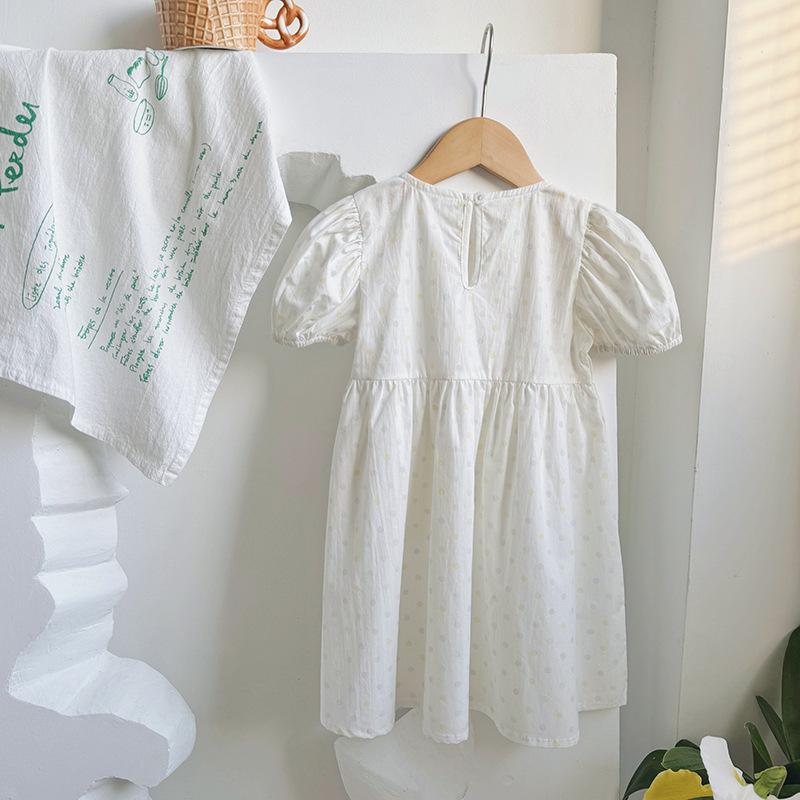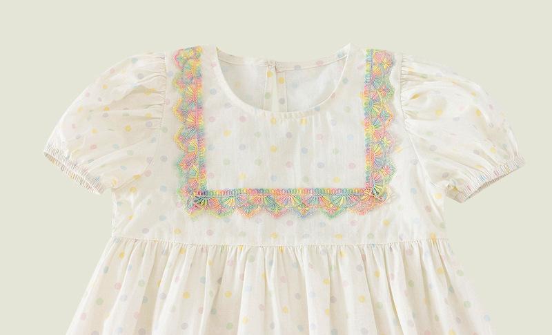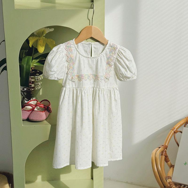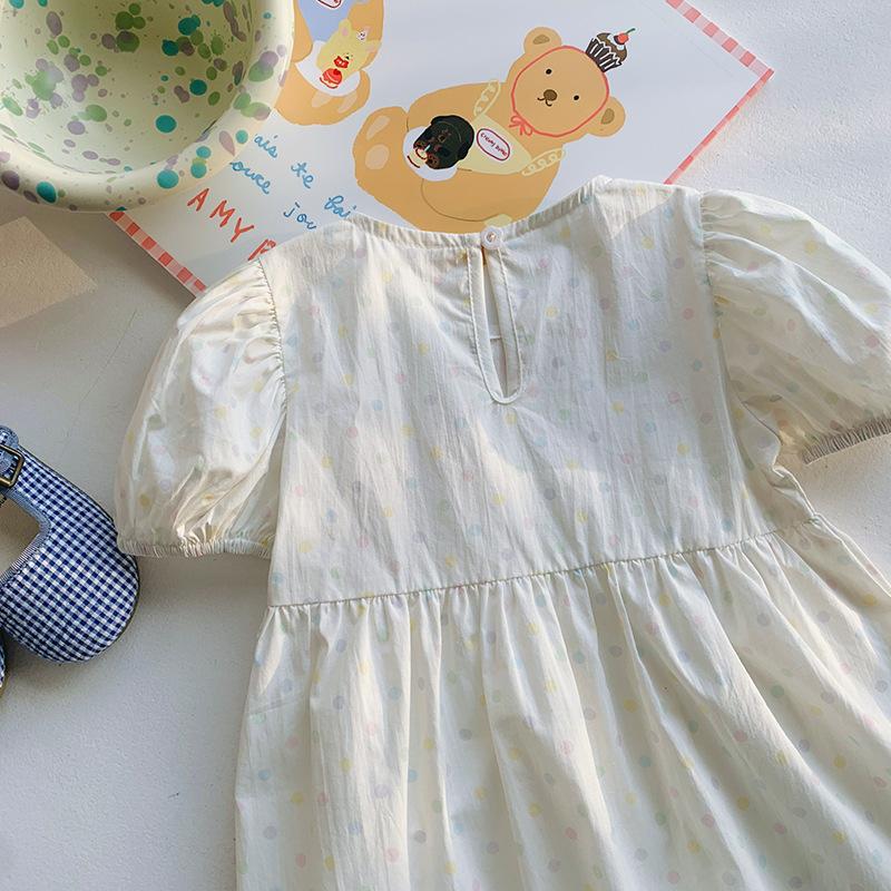 Verano 2025 Nuevo Vestido de Niña de Manga Abullonada con Lunares de Color Cuello Cuadrado Manga Corta Encaje Vestido de Princesa para Niños