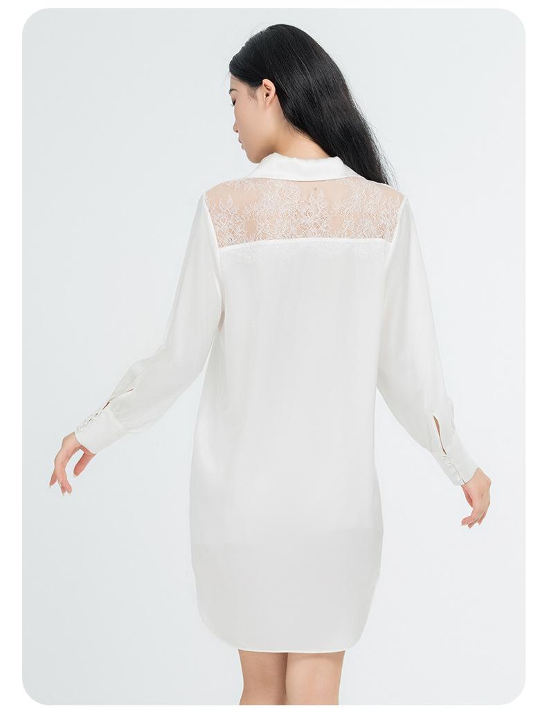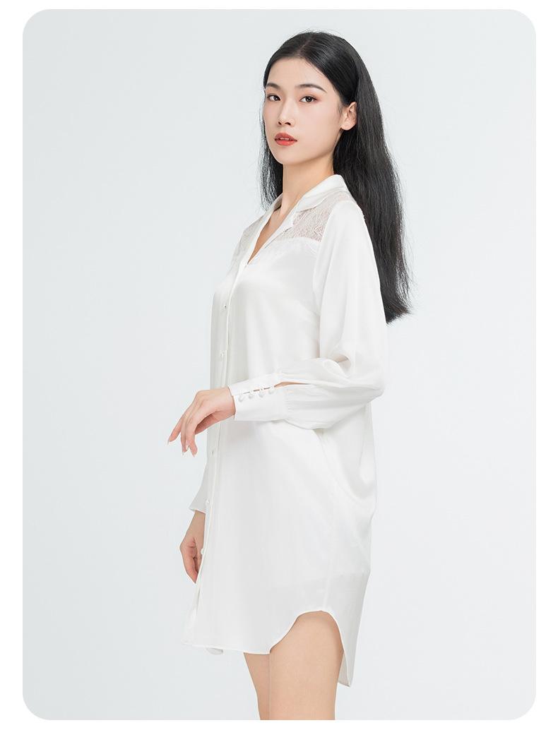 Camisón de Seda de Peso Pesado Verano Nuevo 100% Seda de Morera Encaje Recorte Pijama Femenino Estilo Novio Camisa Ropa para el Hogar