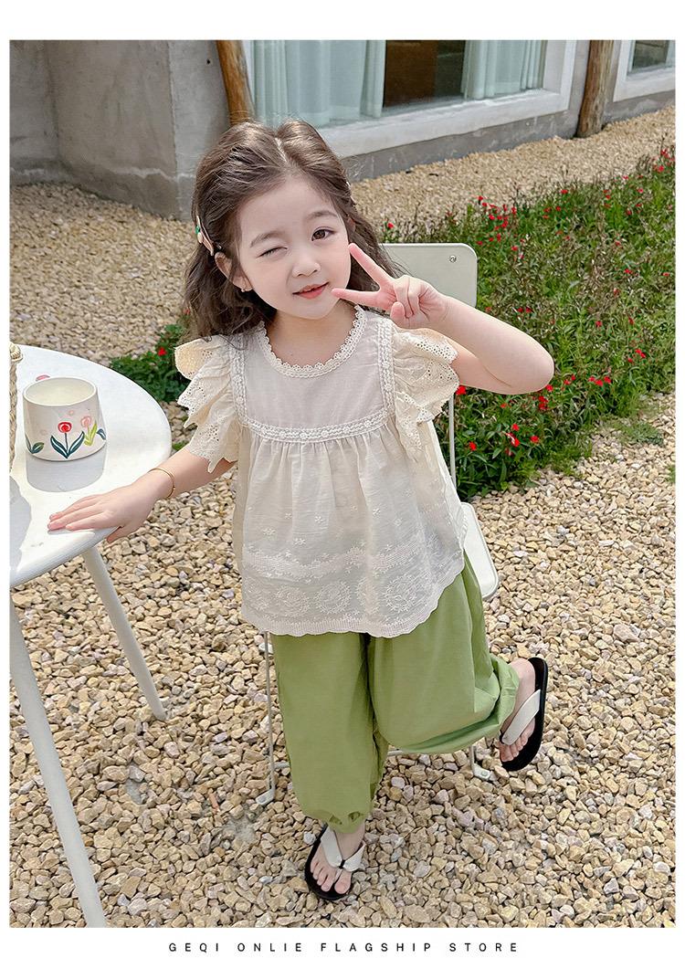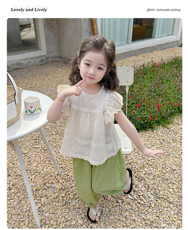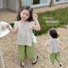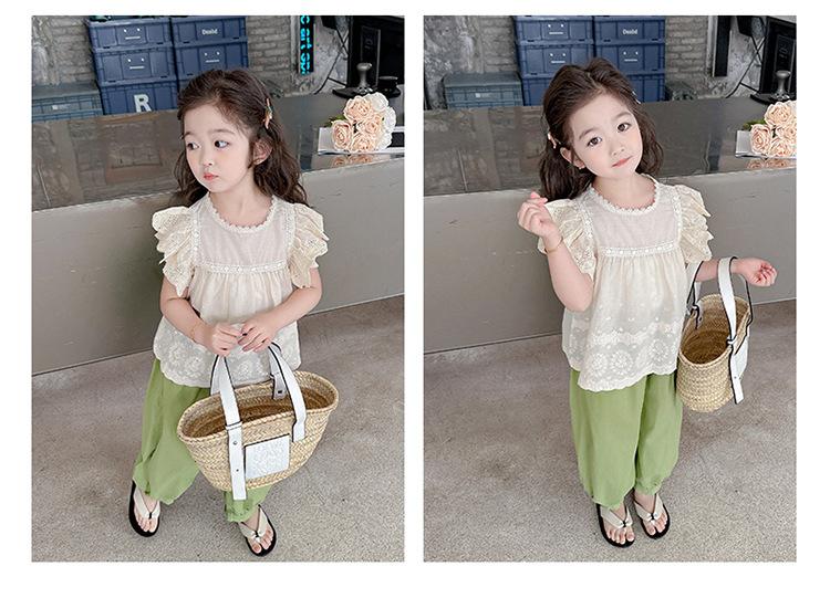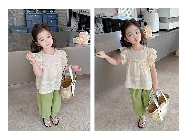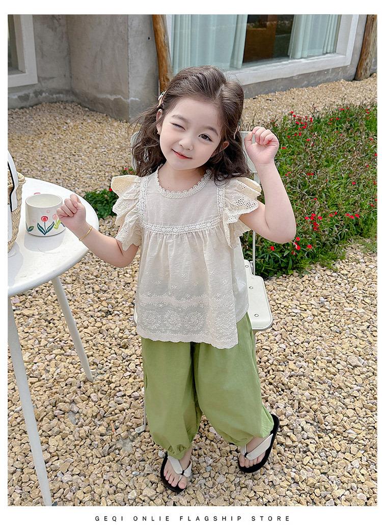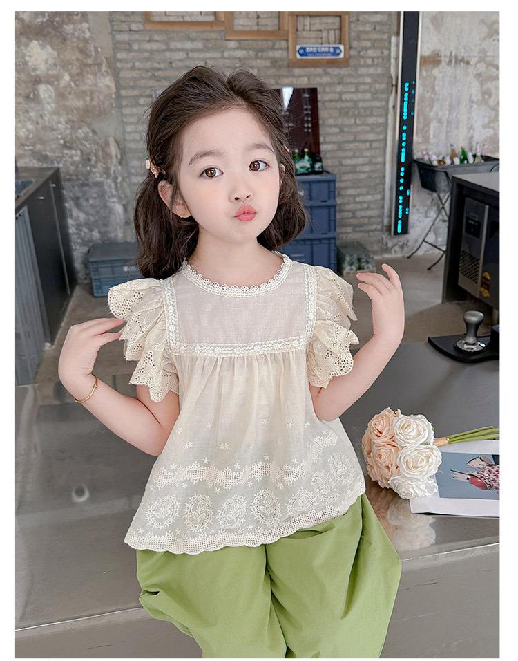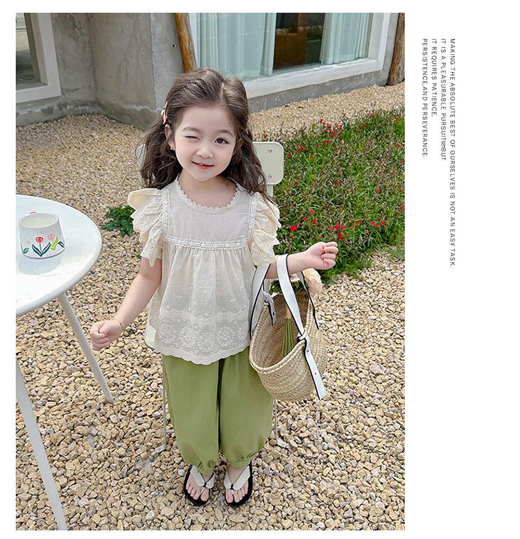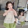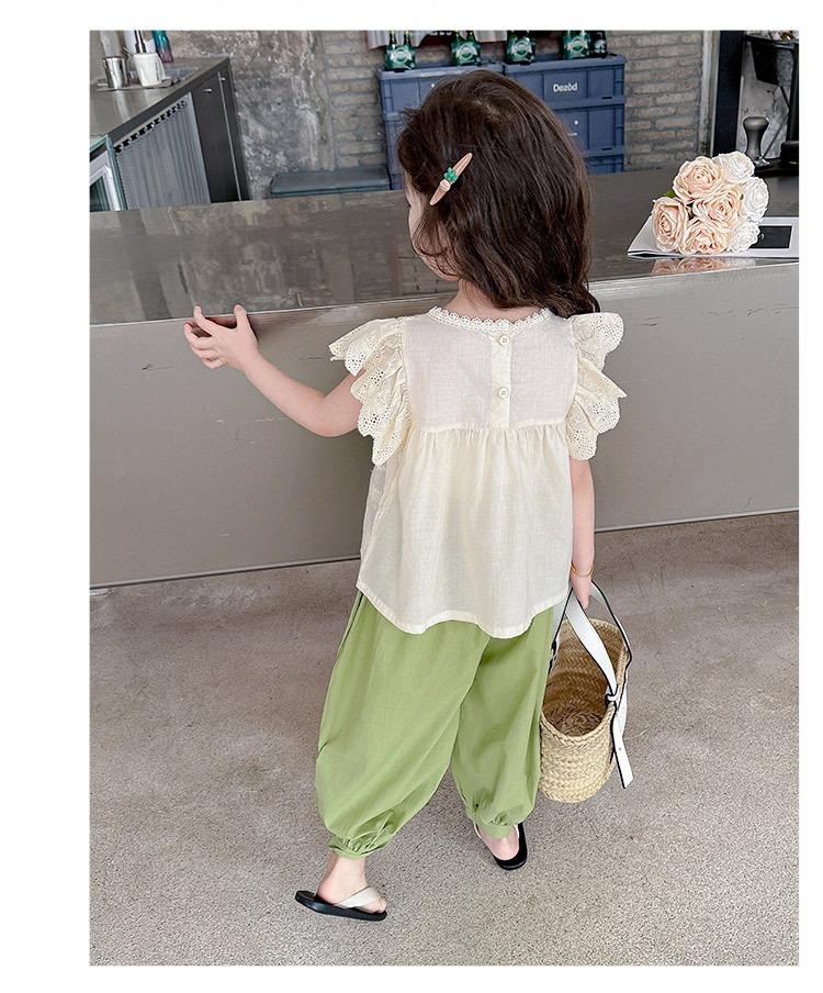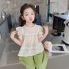 Traje Dulce Casual de Mangas de Encaje para Niñas 2025 Verano Nuevo Estilo Ropa Infantil de Moda Conjunto de Dos Piezas para Bebé