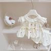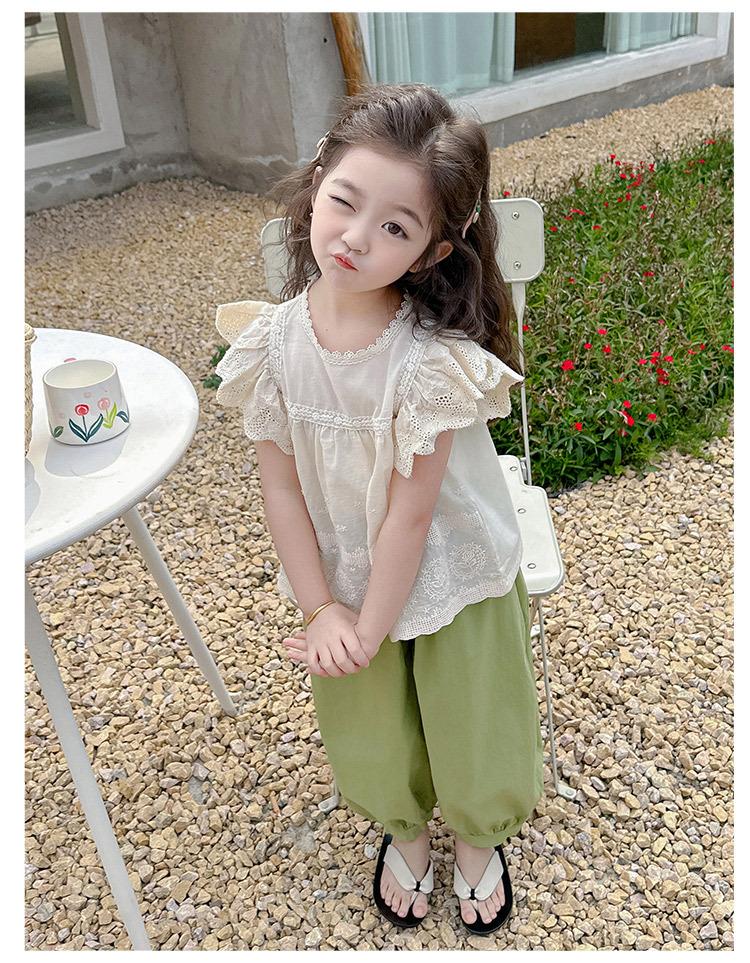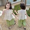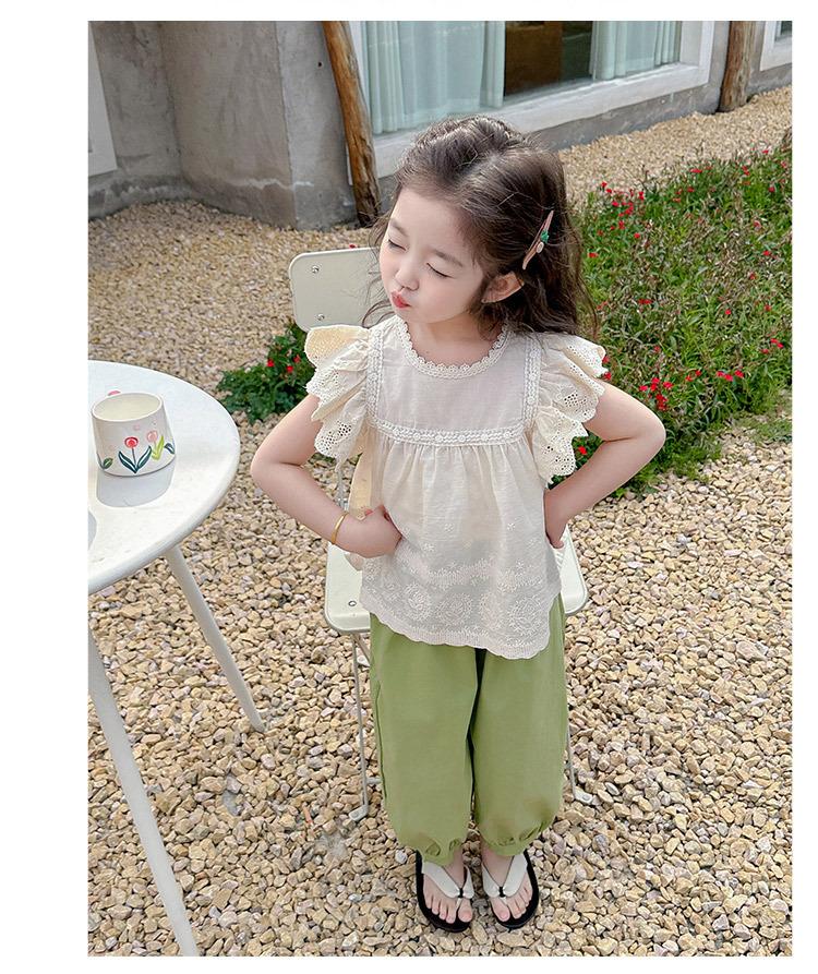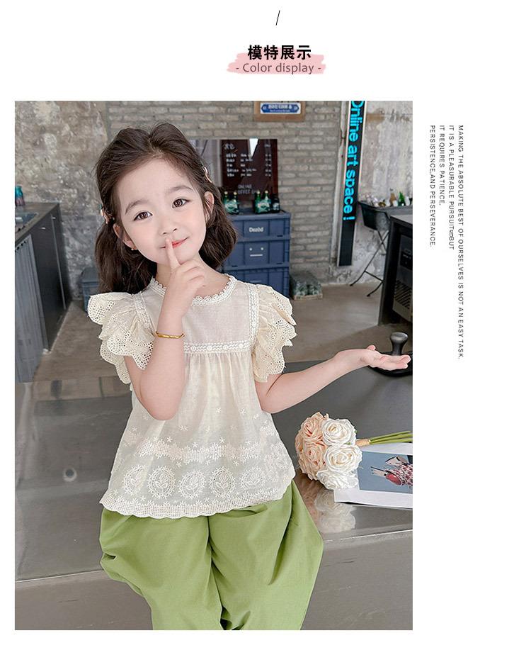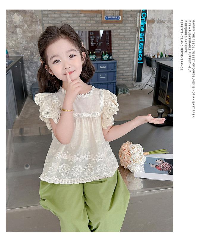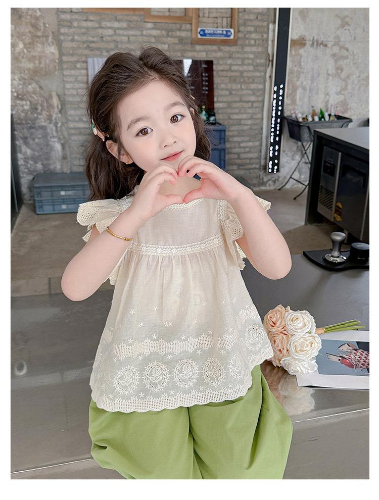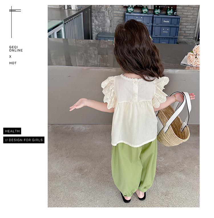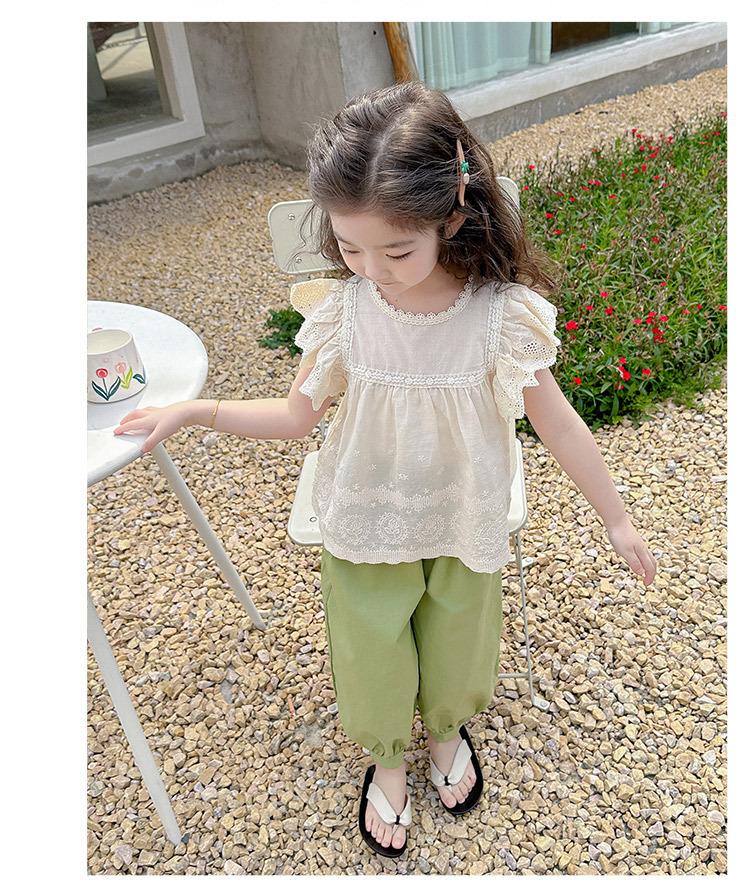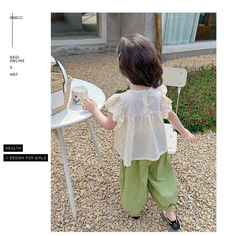 Traje Dulce Casual de Mangas de Encaje para Niñas 2025 Verano Nuevo Estilo Ropa Infantil de Moda Conjunto de Dos Piezas para Bebé