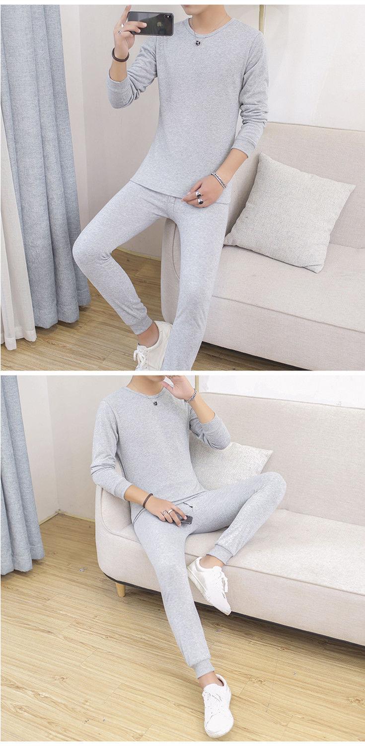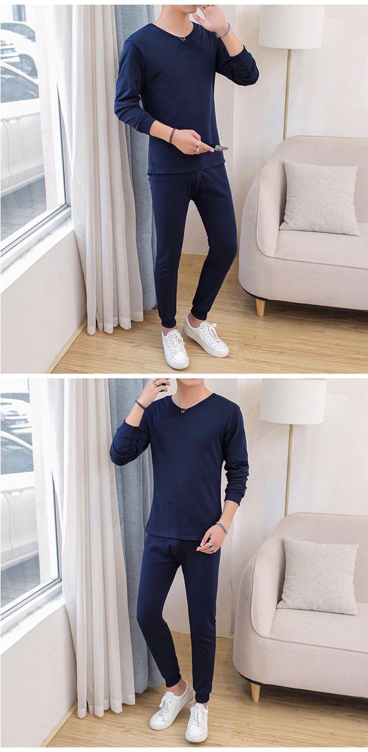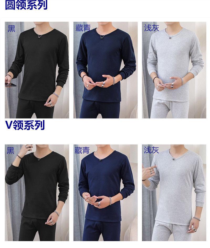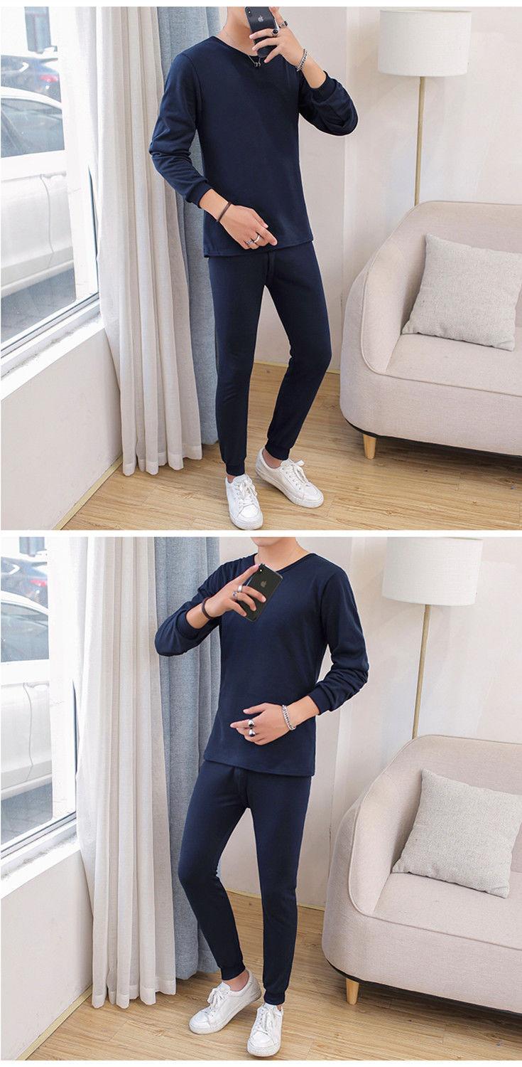 Ropa interior térmica con forro polar para hombre, ropa juvenil de otoño y pantalones casuales de color sólido grueso, cuello redondo para otoño e invierno.