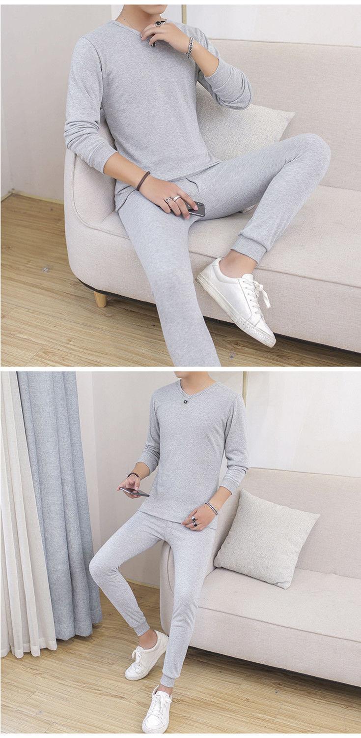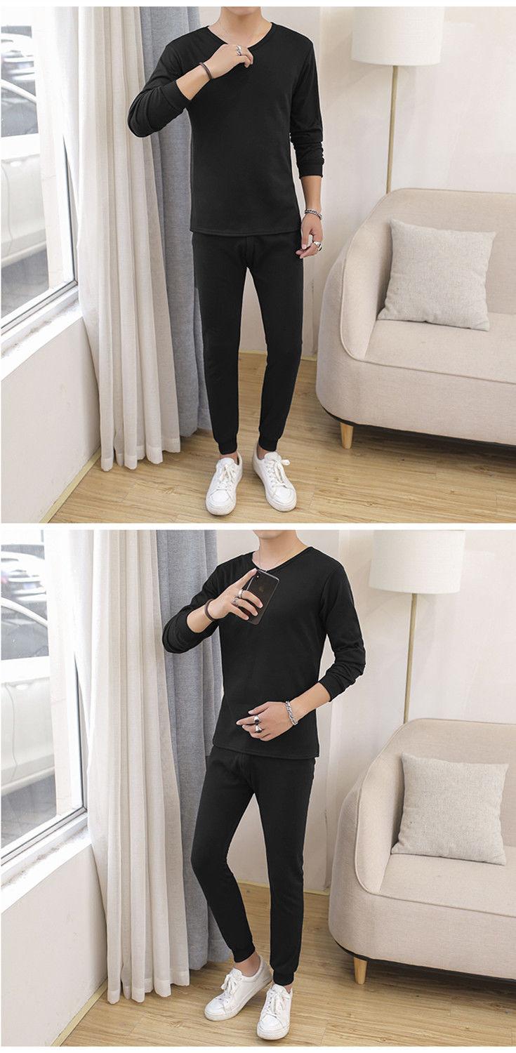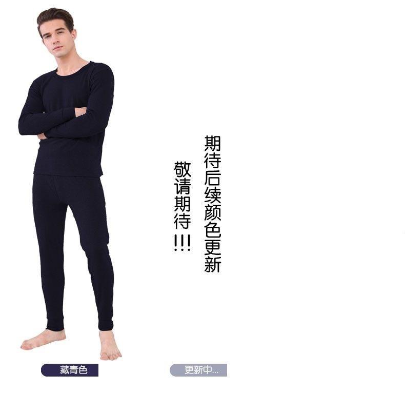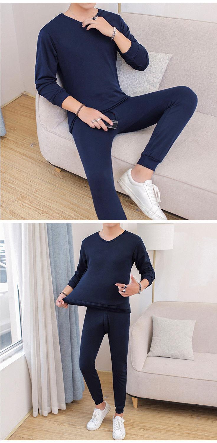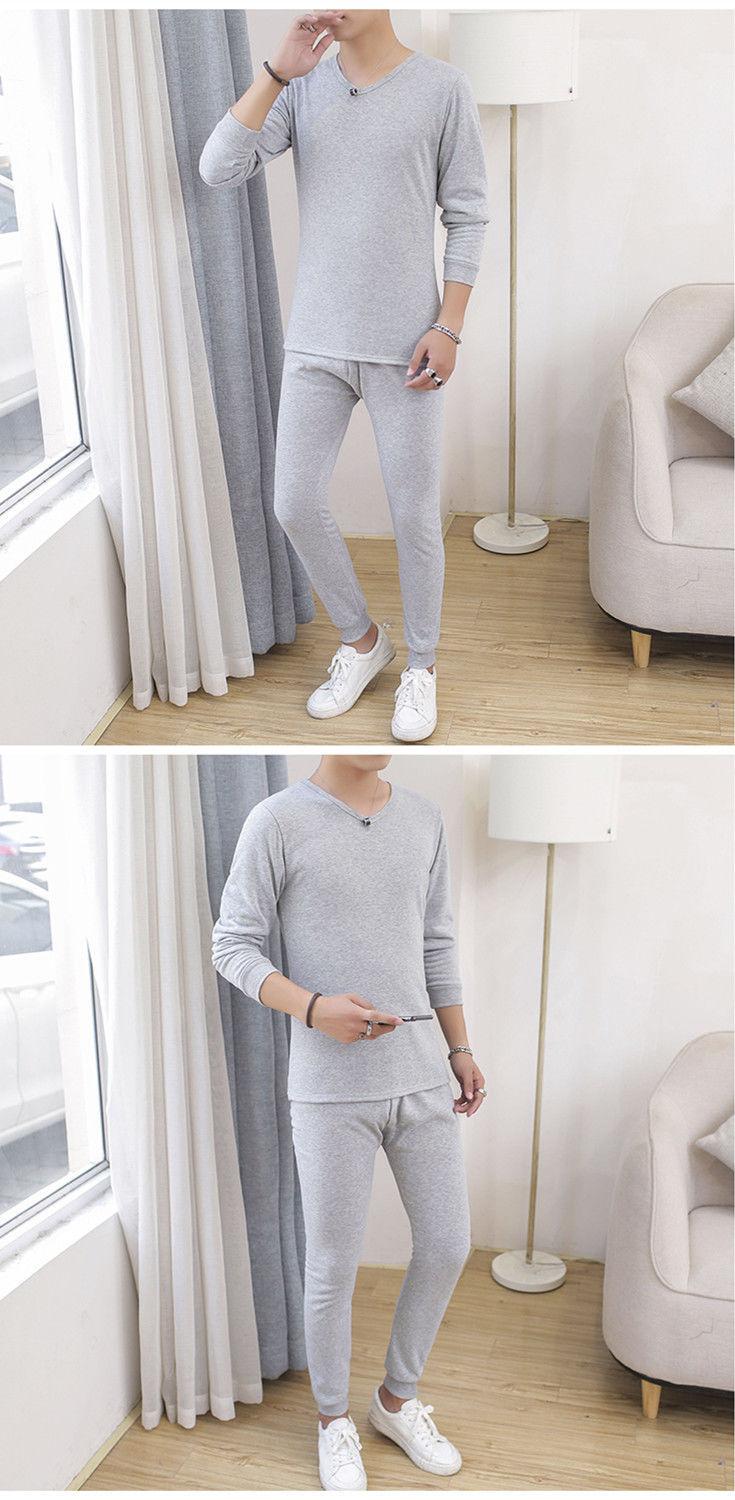 Ropa interior térmica con forro polar para hombre, ropa juvenil de otoño y pantalones casuales de color sólido grueso, cuello redondo para otoño e invierno.
