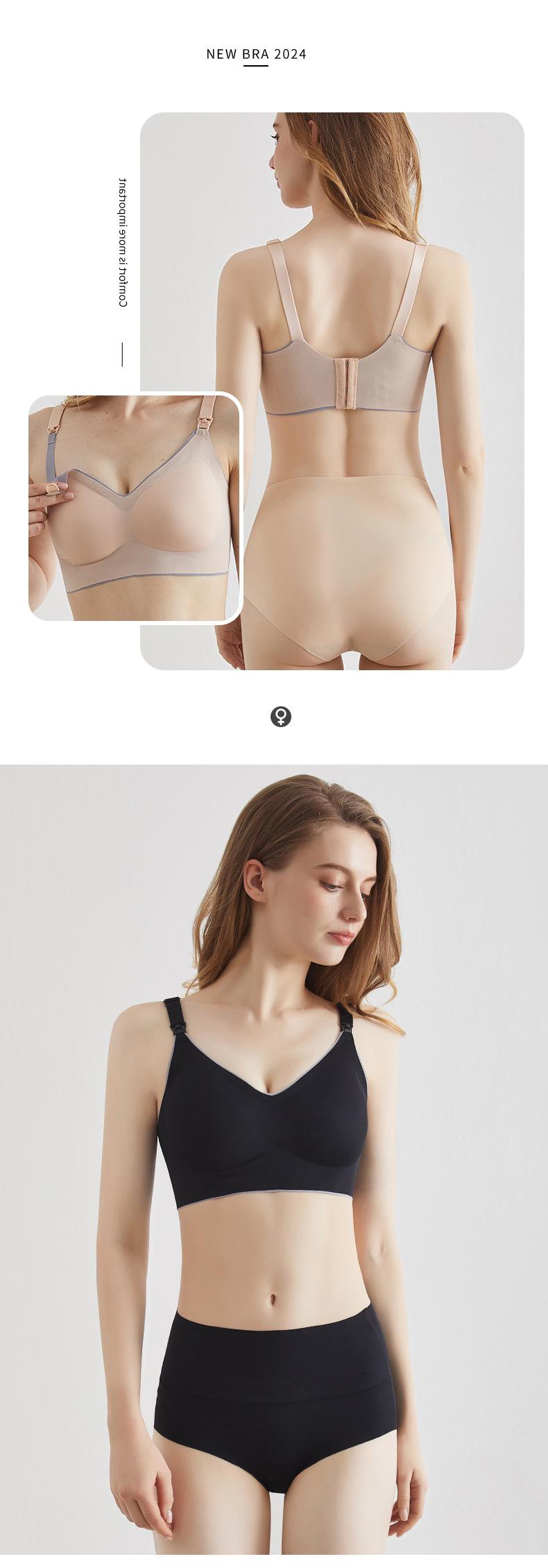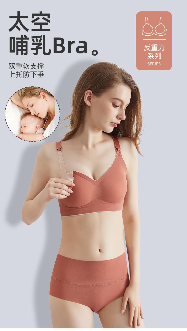 Ropa interior de maternidad para lactancia materna para mujeres embarazadas, sujetador cómodo de lactancia posparto con efecto push up y antiflacidez, sujetador sin costuras