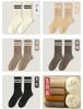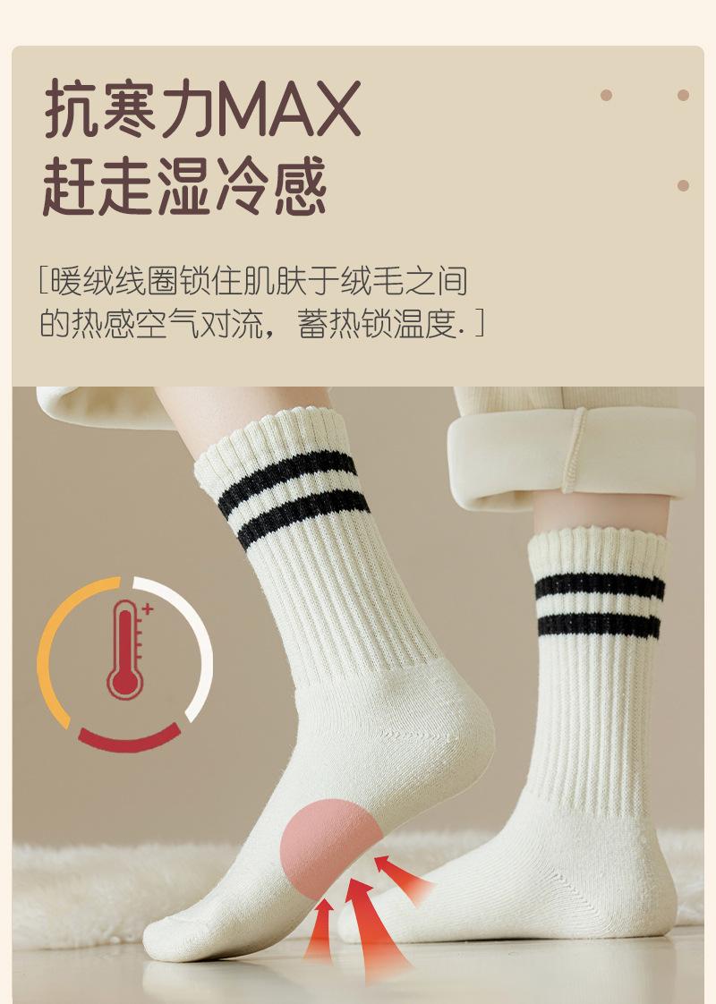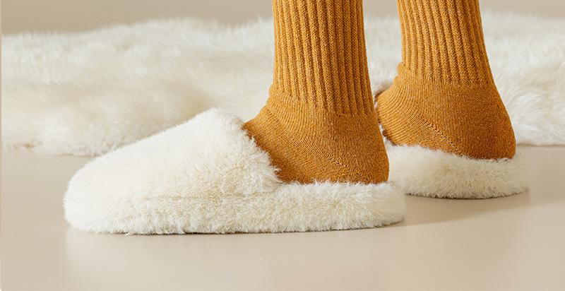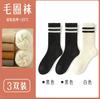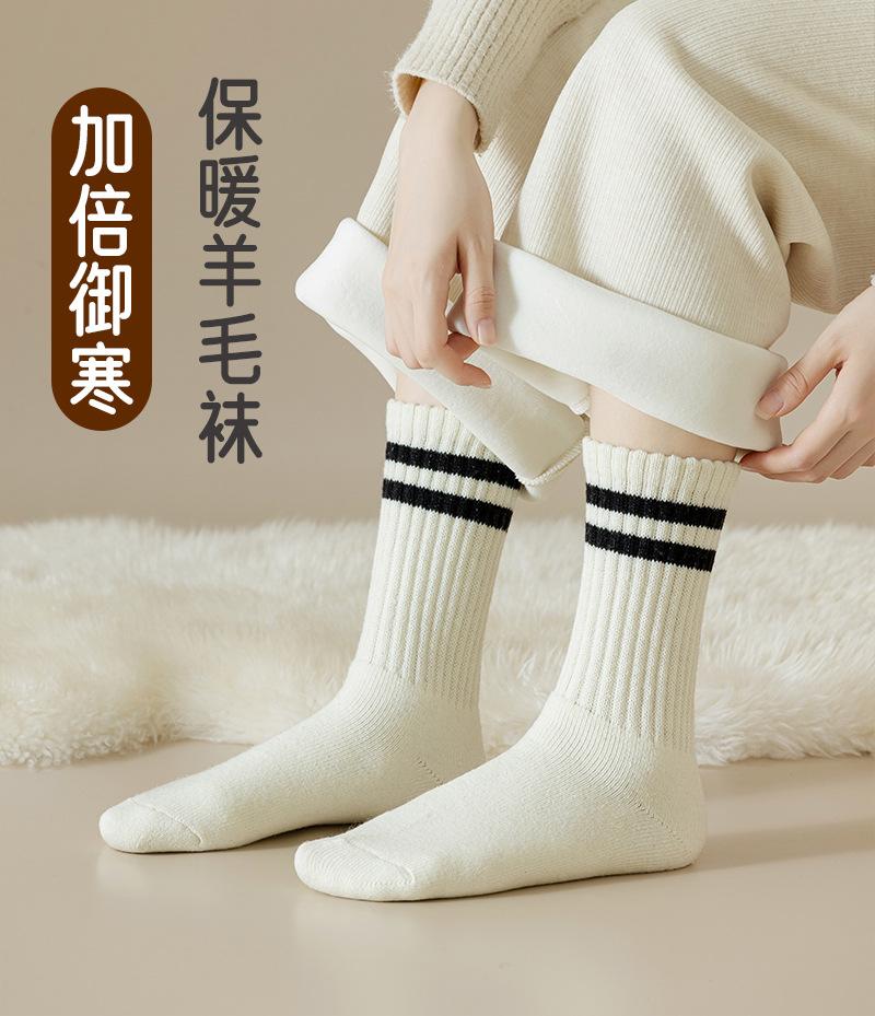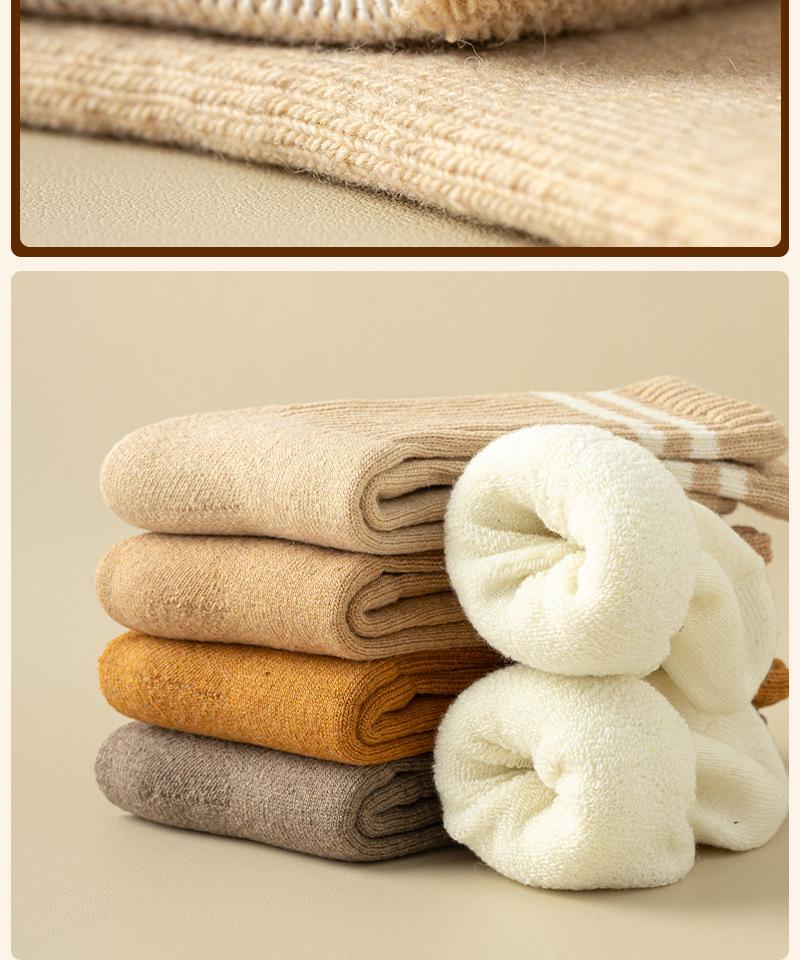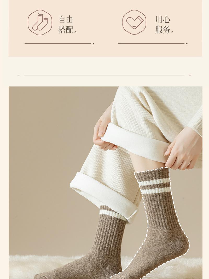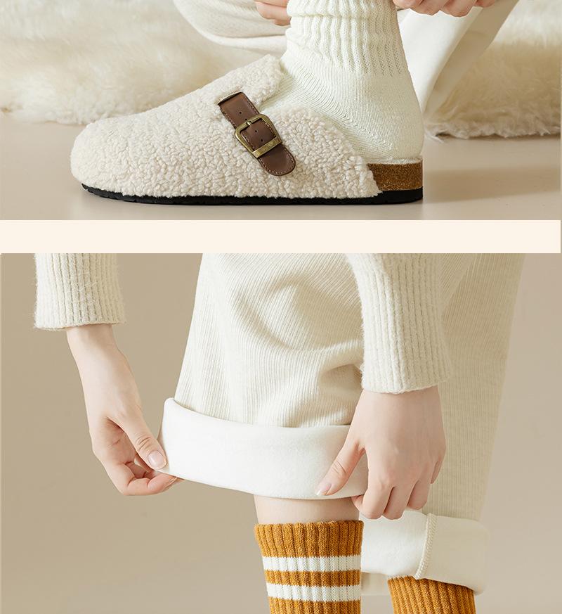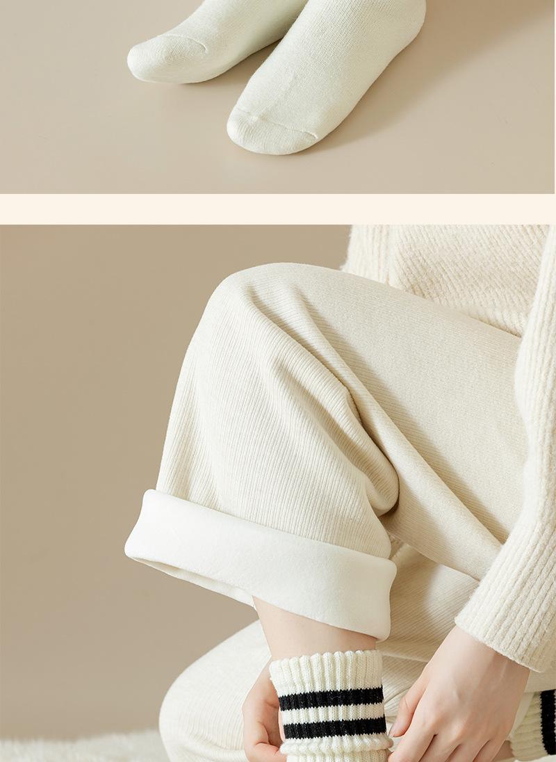 Calcetines de mujer de otoño e invierno hasta media pantorrilla, calcetines de lana de conejo gruesa con forro polar a rayas, calcetines de pelo largo, calcetines cálidos de cachemira para mujer