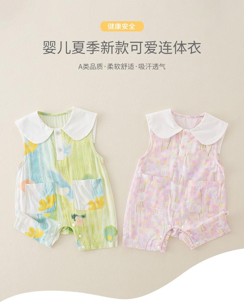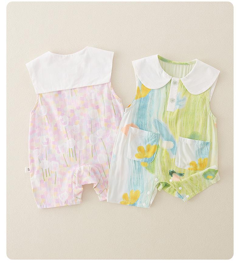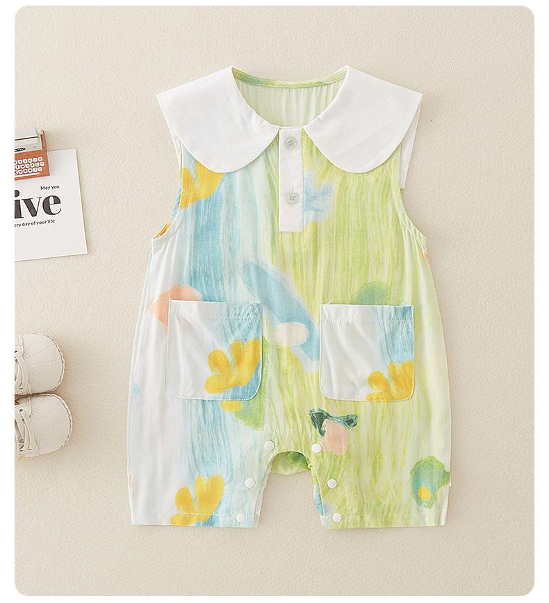 Mono de verano para bebé, nuevo, de algodón puro, fino, de manga corta, con grafiti, aire acondicionado, para escalada, bonito y cómodo.