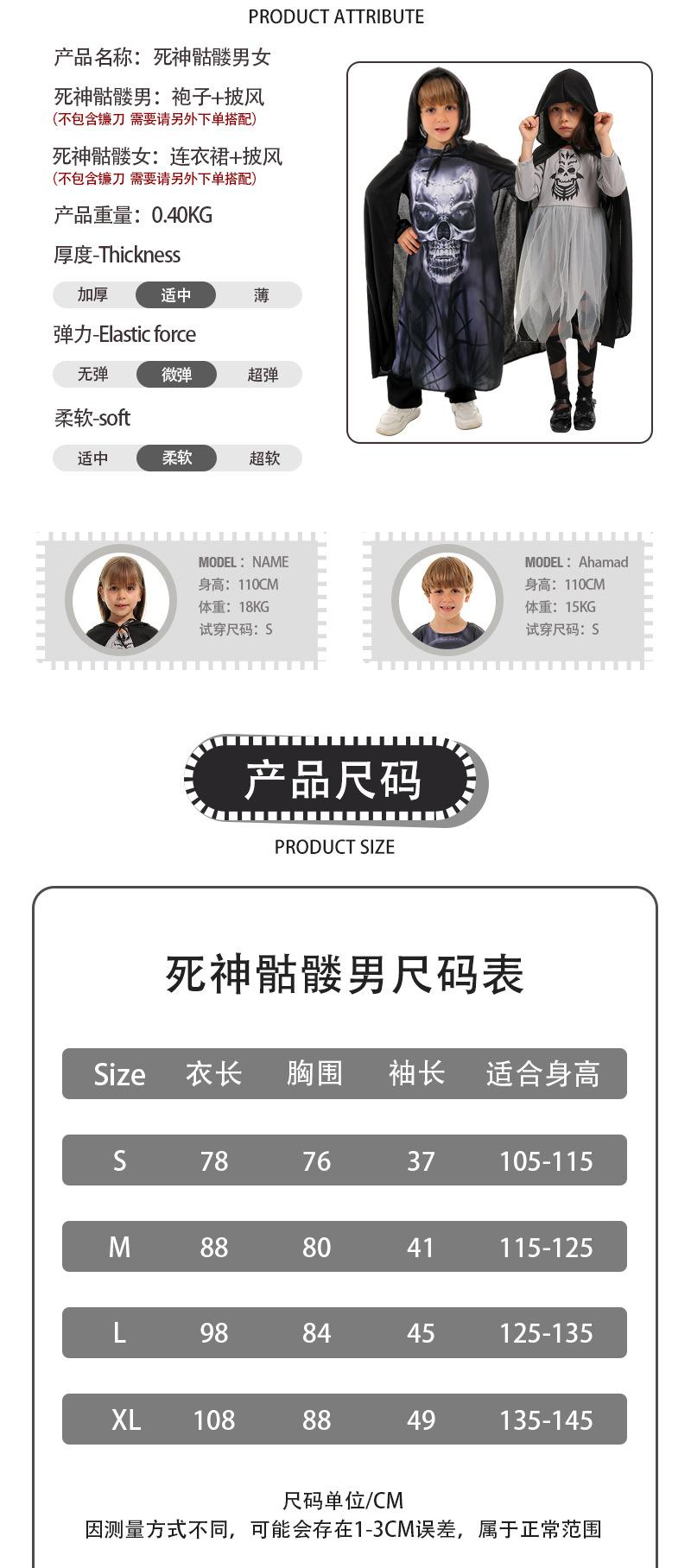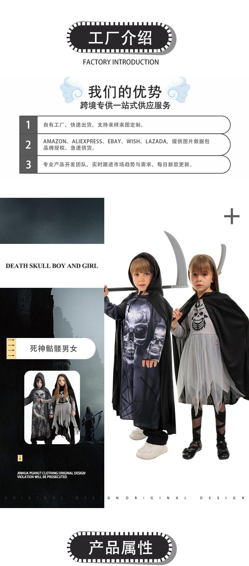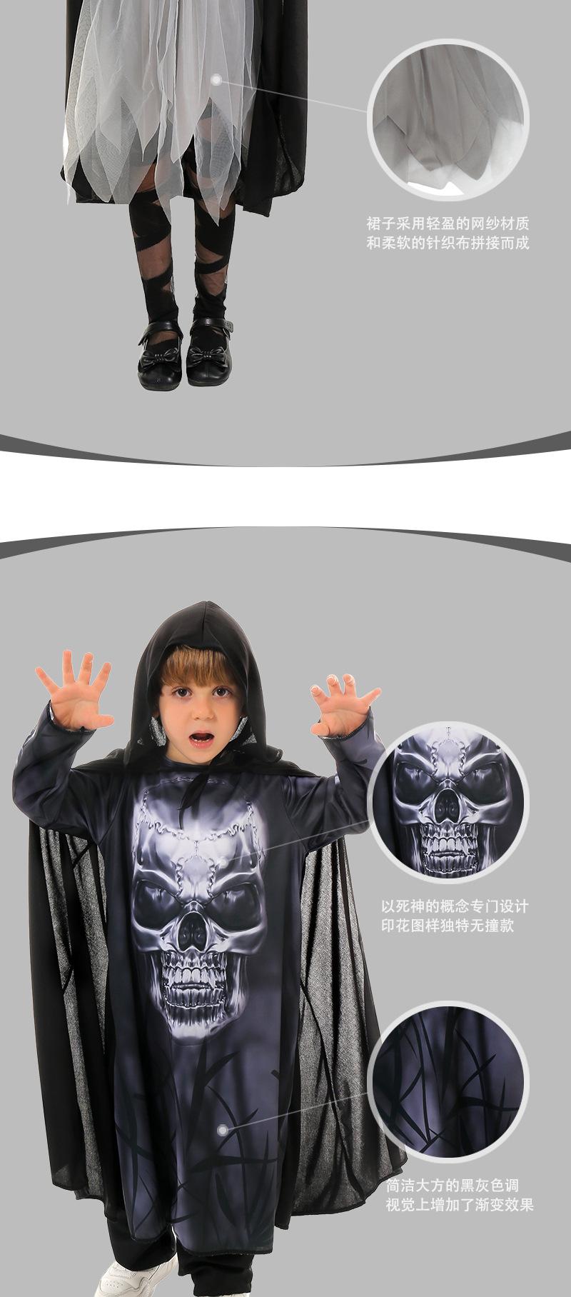 Nuevo disfraz de Halloween para niños, disfraz de cosplay de la muerte, disfraz para fiesta de jardín de infantes, disfraz para actuación escénica.