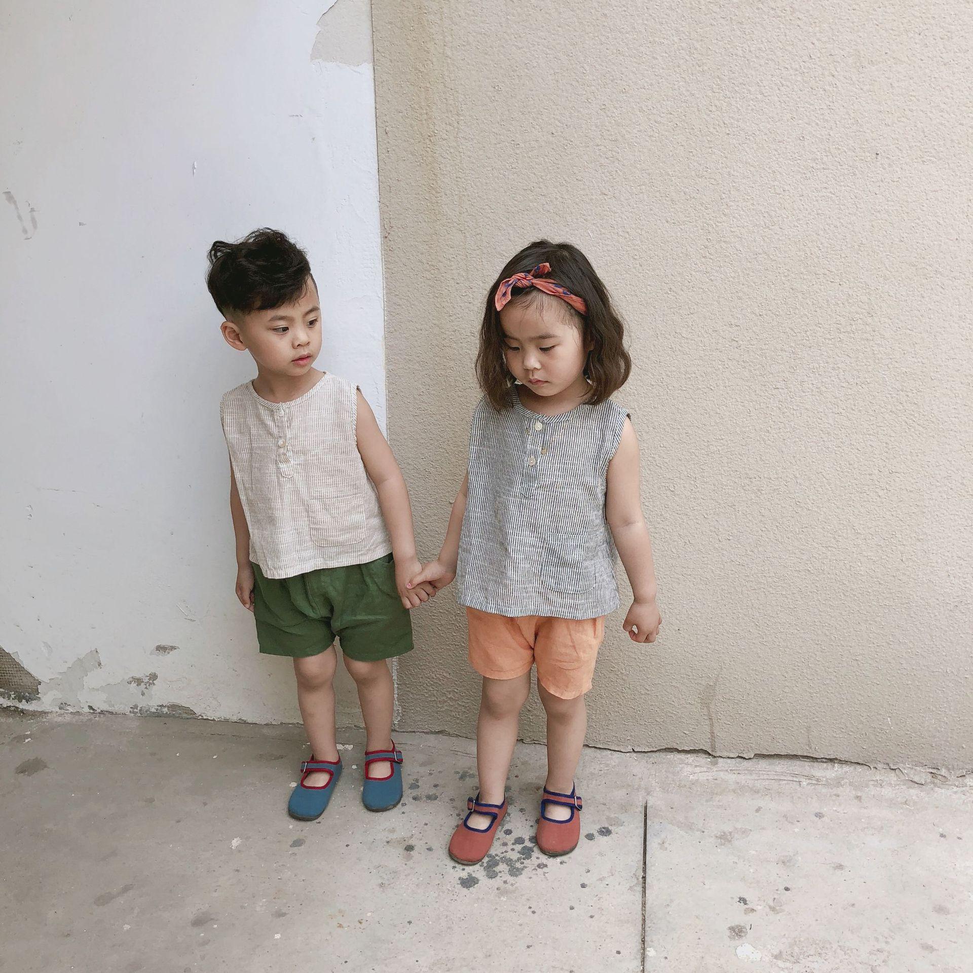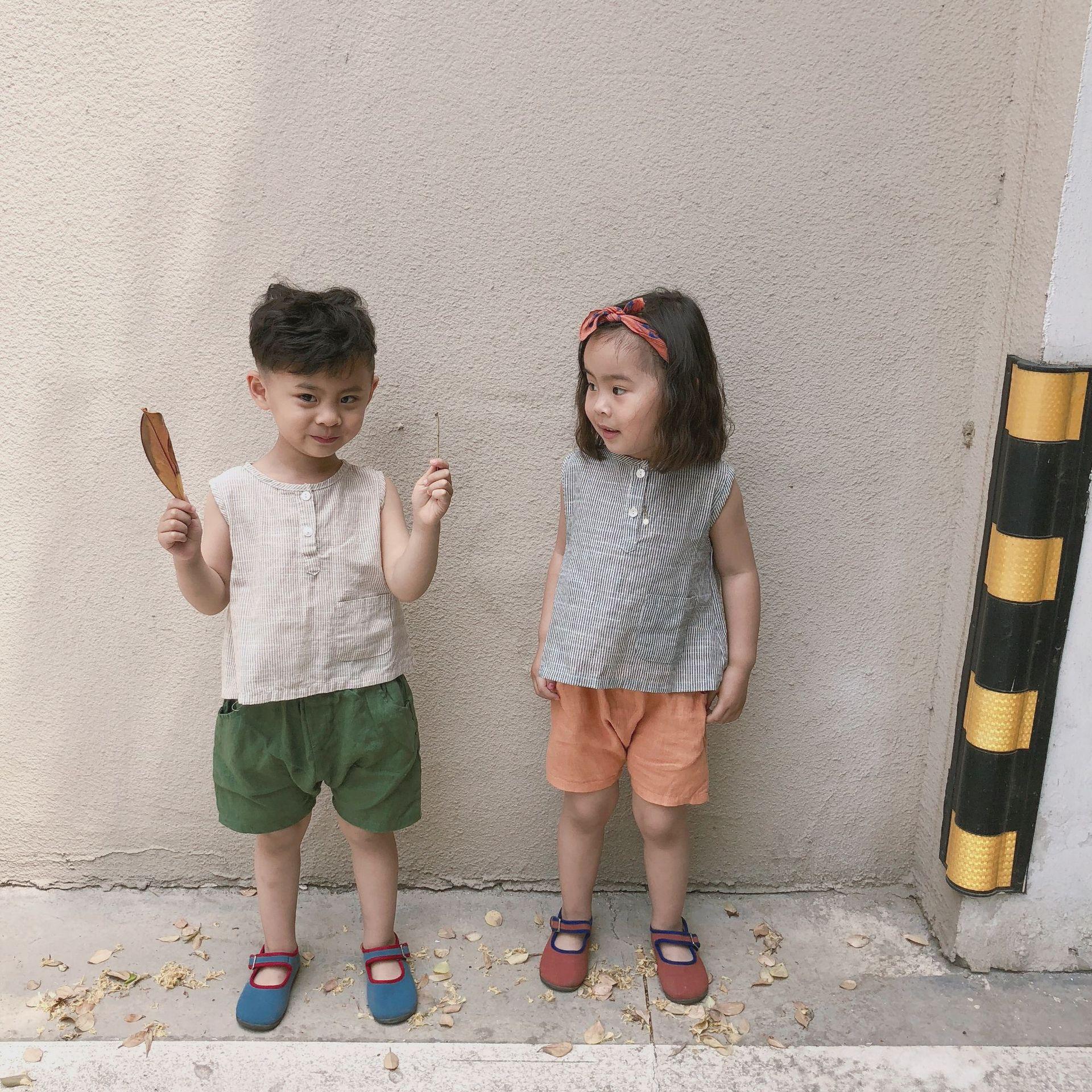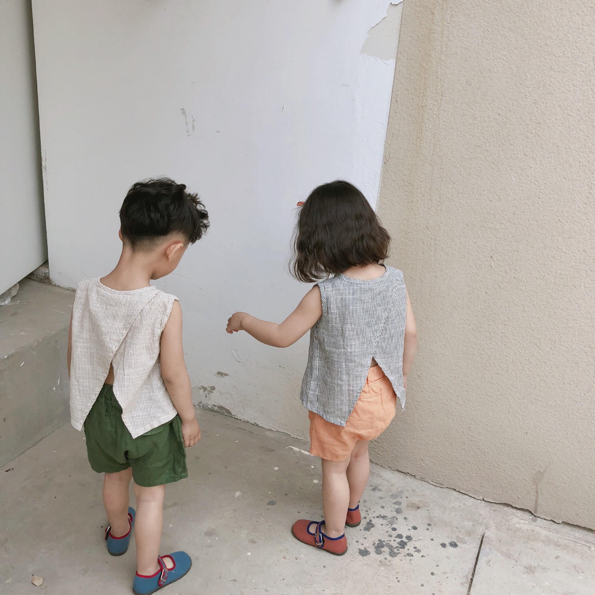Compra Chaleco para Niños Verano Camiseta Interior para Niños Sin Mangas Estilo Coreano Algodón Lino Rayado Top para Niñas Fino Estilo Coreano Rayado al por mayor en Joom.pro