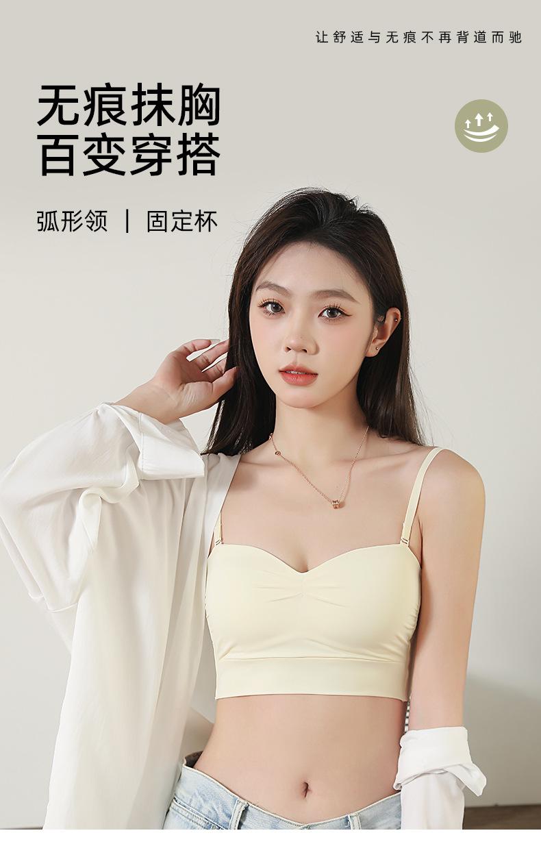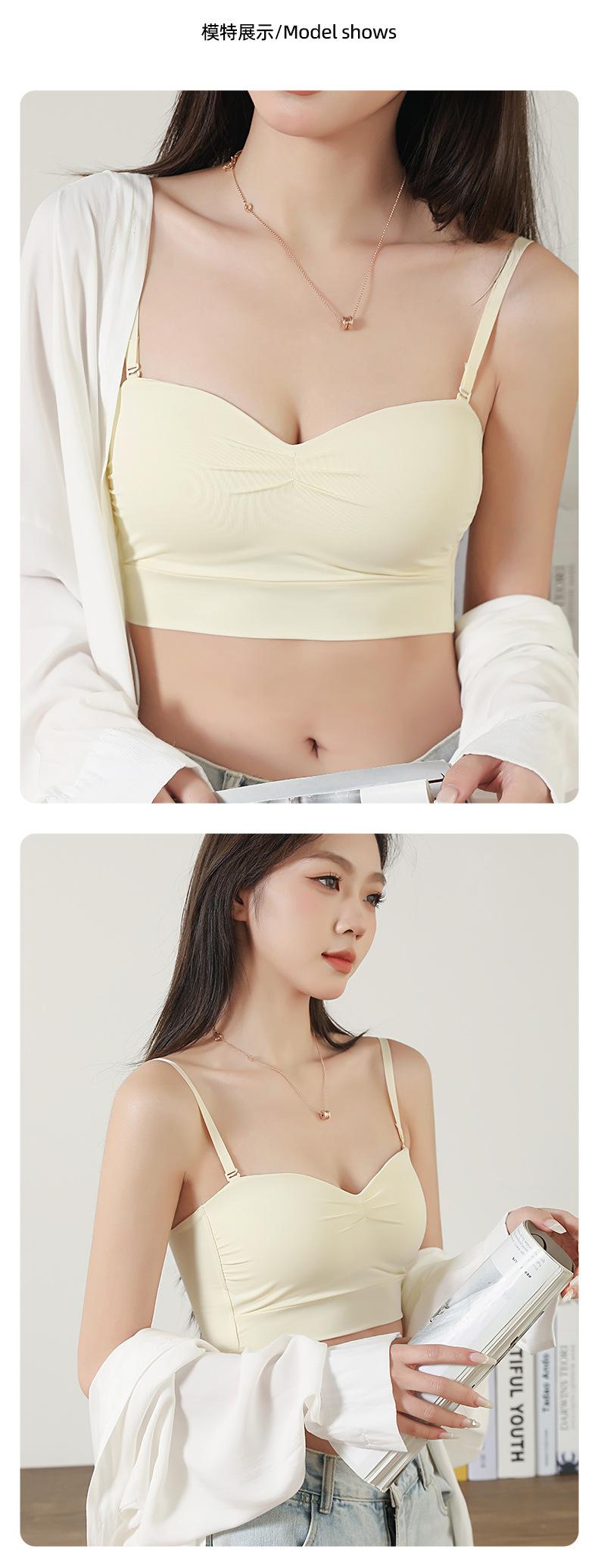 Verano Nuevo Sujetador Sin Costuras Absorbente de Sudor Todo en Uno Seda de Hielo con Almohadilla en el Pecho Sling Íntimos Cómodos Top Tubo con Pecho Envuelto Espalda Hermosa para Mujeres