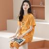 Pijama de verano para mujer, de algodón, de manga corta, con pantalones cortos, fino y cómodo, con dibujos animados, para el hogar.