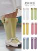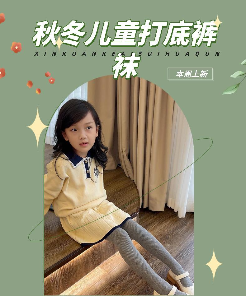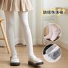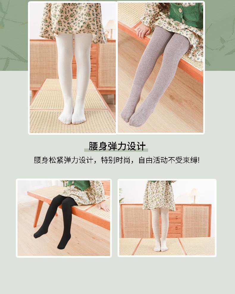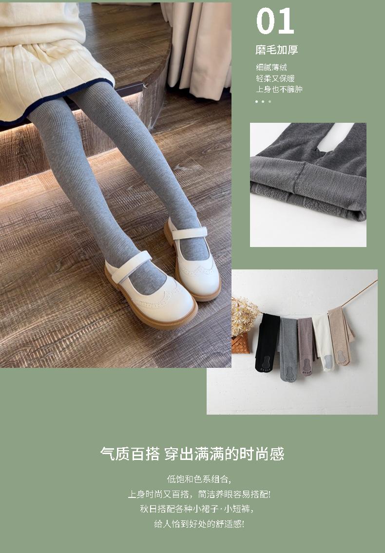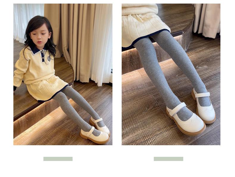 Pantimedias de algodón peinado grueso con base cepillada para niñas, de primavera y otoño, con tiras verticales finas y funcionales antibolitas.