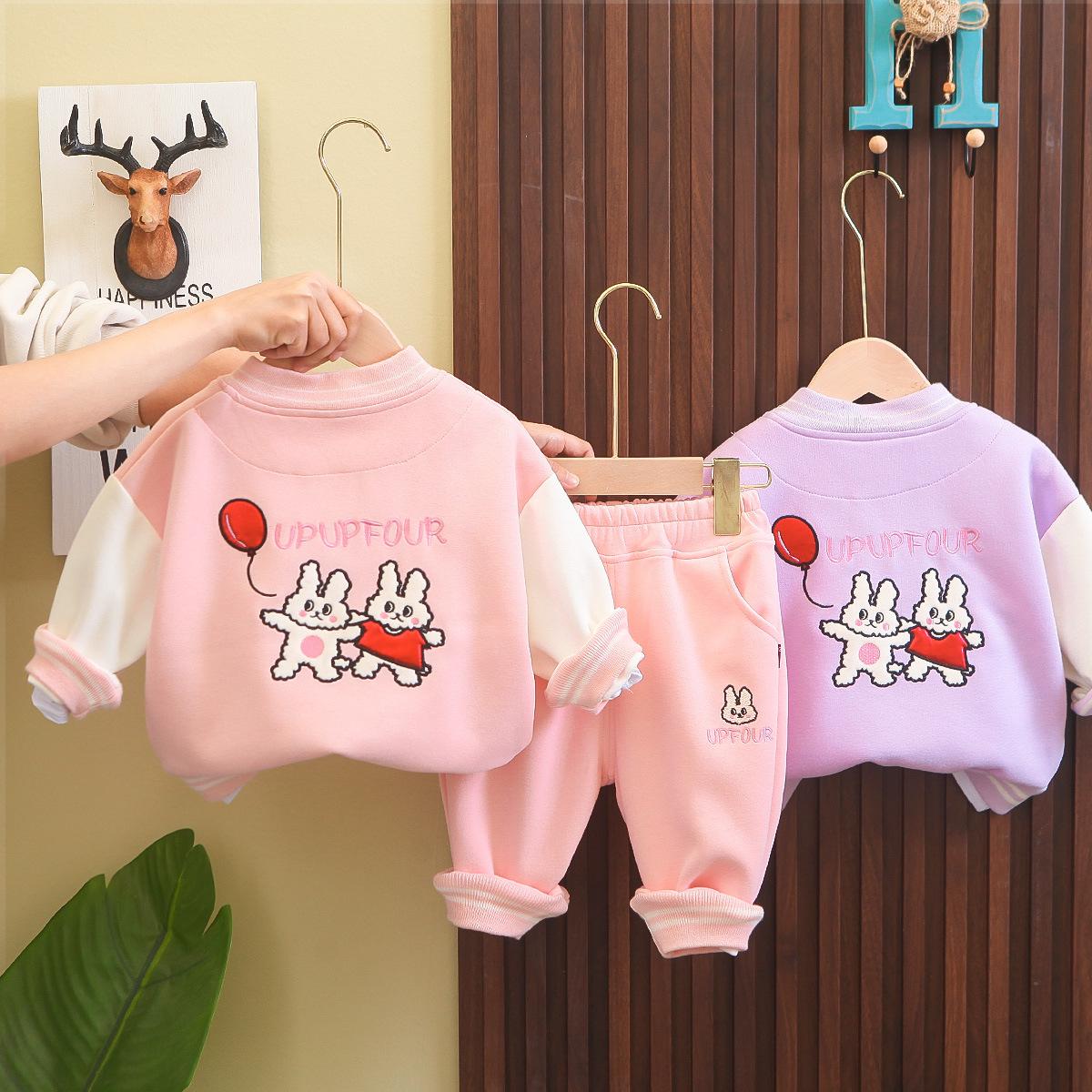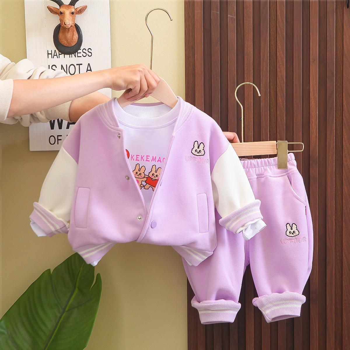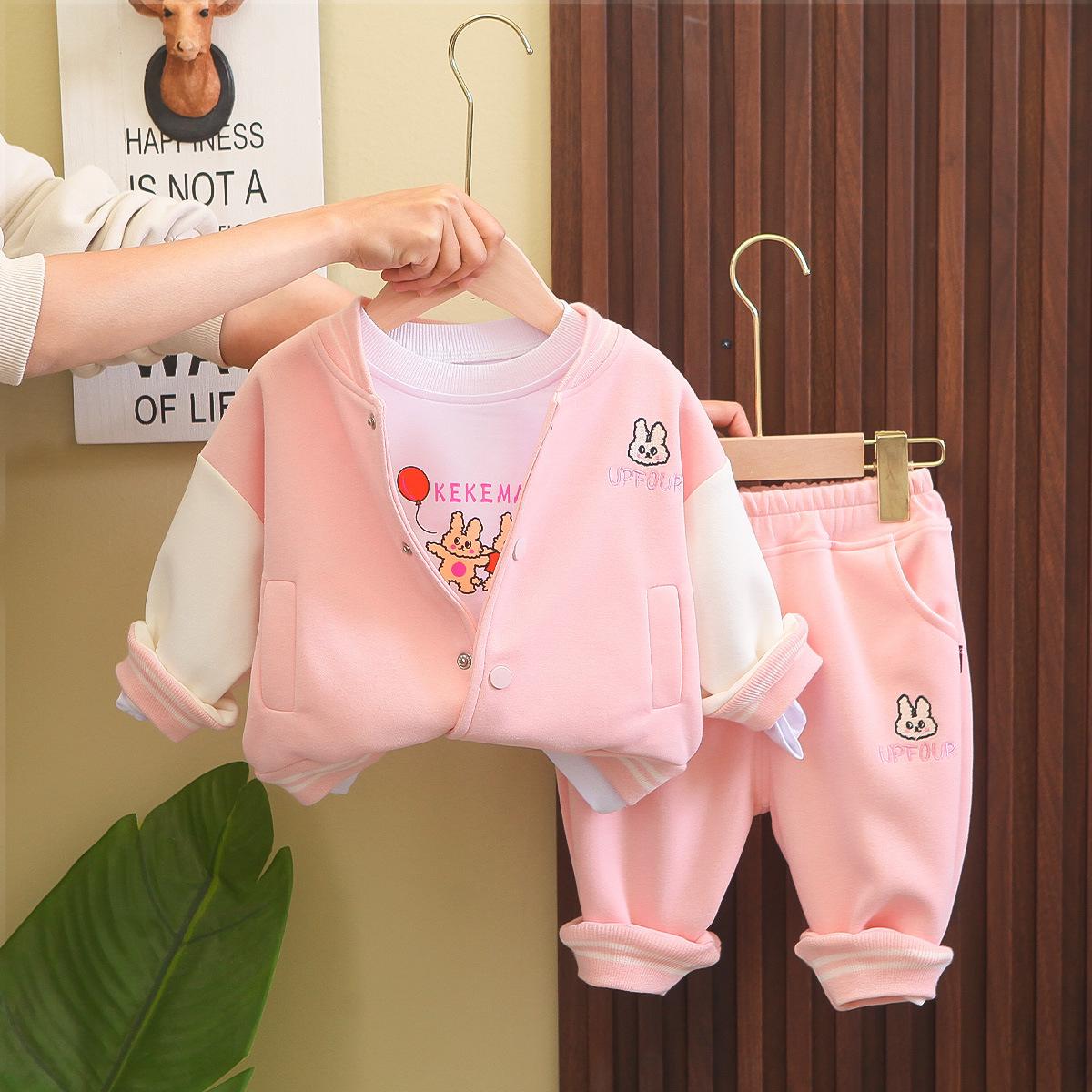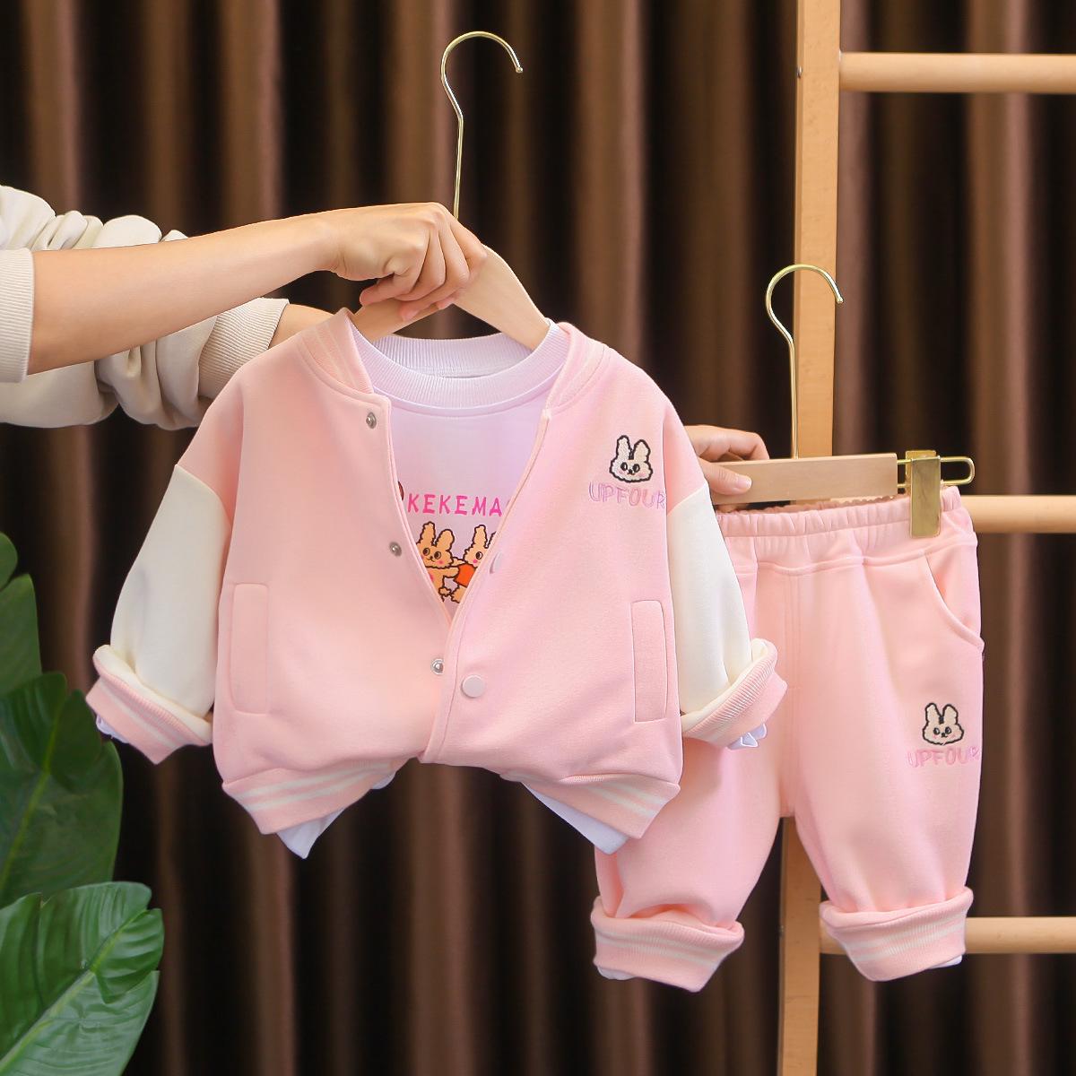 Compra Conjunto de tres piezas de uniforme de béisbol informal para niñas pequeñas, primavera y otoño 2024, nuevo traje de suéter deportivo para niñas pequeñas al por mayor en Joom.pro