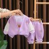 Conjunto de tres piezas de uniforme de béisbol informal para niñas pequeñas, primavera y otoño 2024, nuevo traje de suéter deportivo para niñas pequeñas