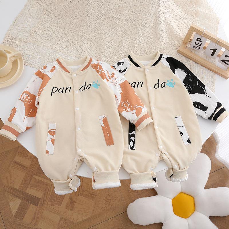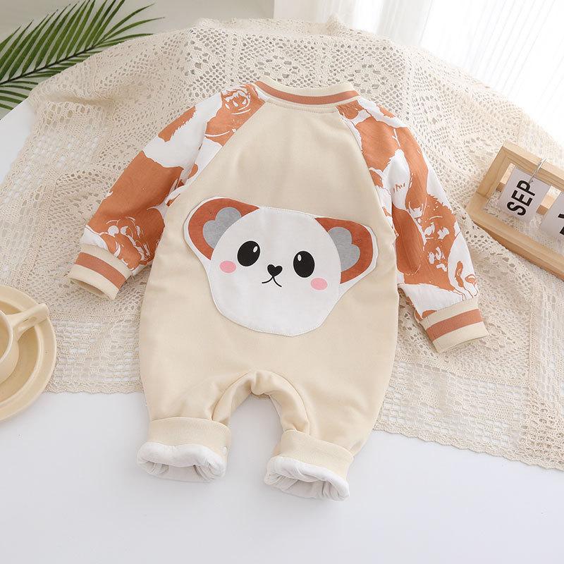 Mono de manga larga para bebé, de primavera y otoño, de doble capa, mono de dibujos animados para recién nacido